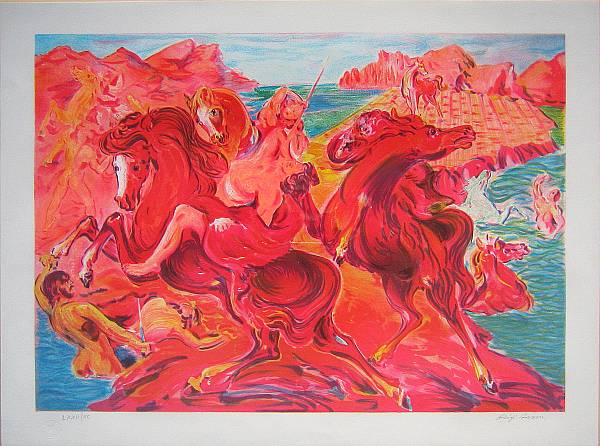 ALIGI SASSU (1912-2000) - LA BATTAGLIA DEL LAGO MAREOTIDE 1989 - LITOGRAFIA CM.75,5X54 ES.LXXII/XC - FIRMA E TIMBRO A SECCO - IN CORNICE