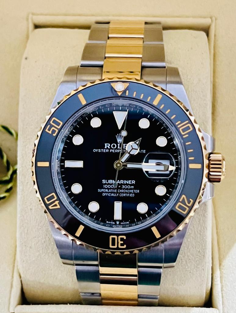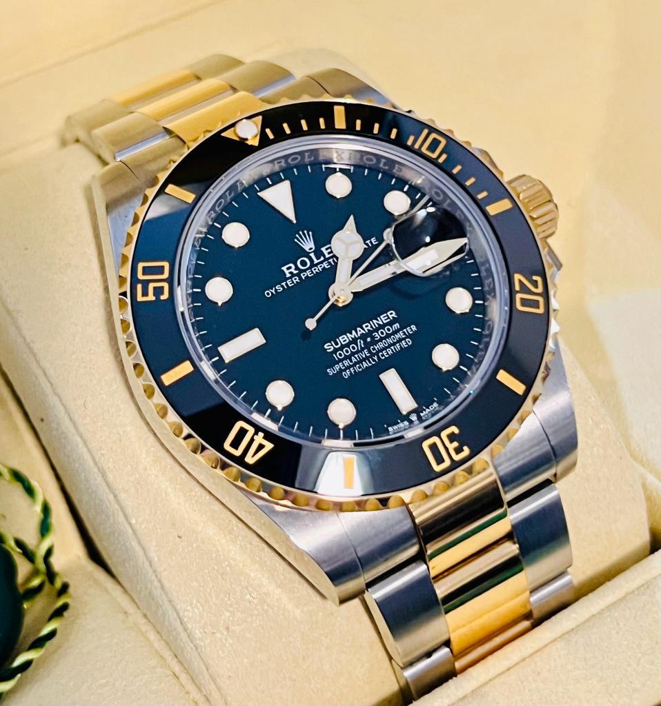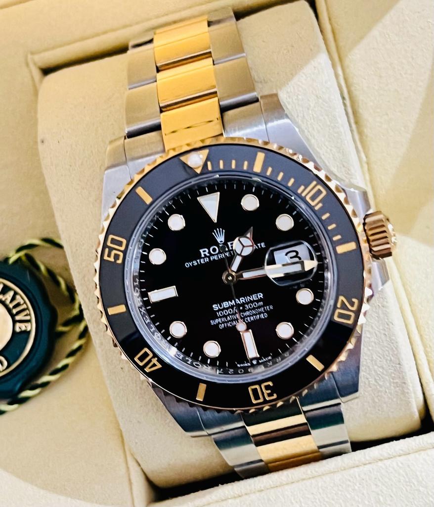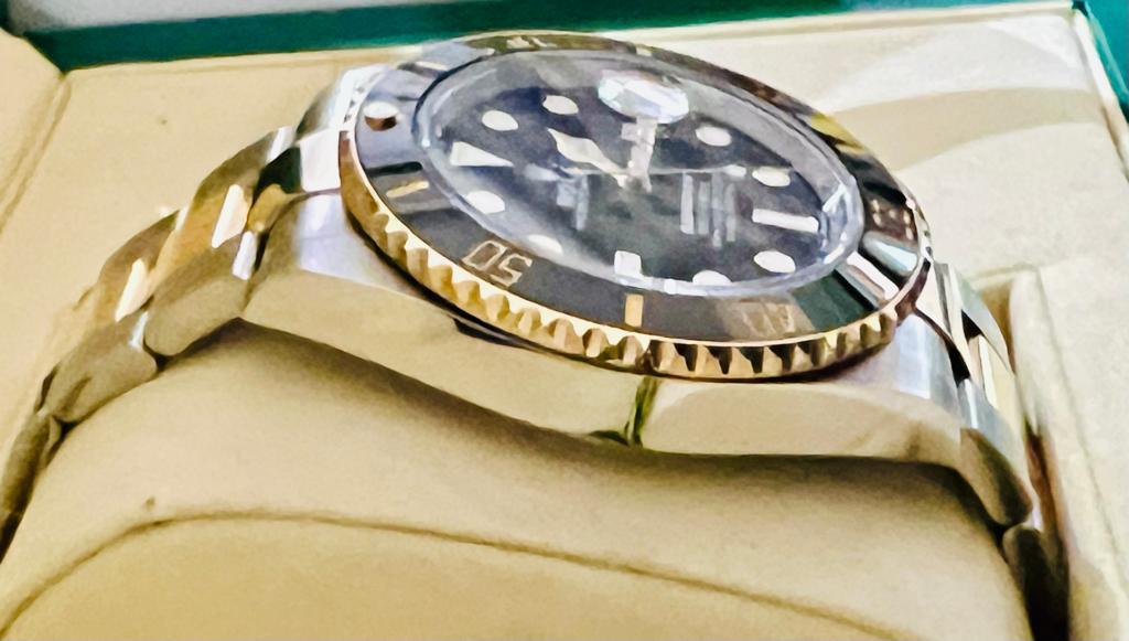 Marca Rolex Modello (Orologio) Submariner Date Numero di referenza 126613ln Carica Automatico Materiale della cassa Oro/Acciaio Materiale cinturino Oro/acciaio Anno di produzione 2020 anno approssimativo documenti originali, no box, la scatola viene utilizzata solo per fotografie non è in vendita Carica Automatico Cassa Materiale della cassa Oro/Acciaio Diametro 41 mm Impermeabile 30 ATM Materiale lunetta Oro giallo Vetro Vetro zaffiro Numeri sul quadrante Senza numeri Cinturino Materiale cinturino Oro/acciaio Colore cinturino Oro/acciaio Chiusura Déployante Materiale chiusura Oro/Acciaio - COMMISSIONE D’ASTA 25%