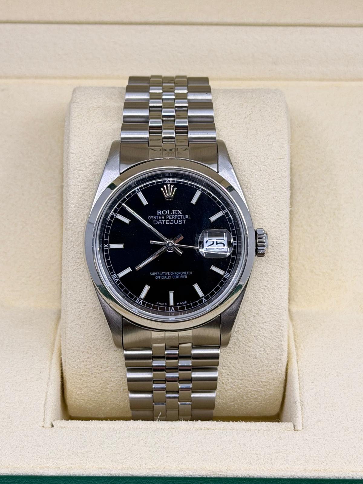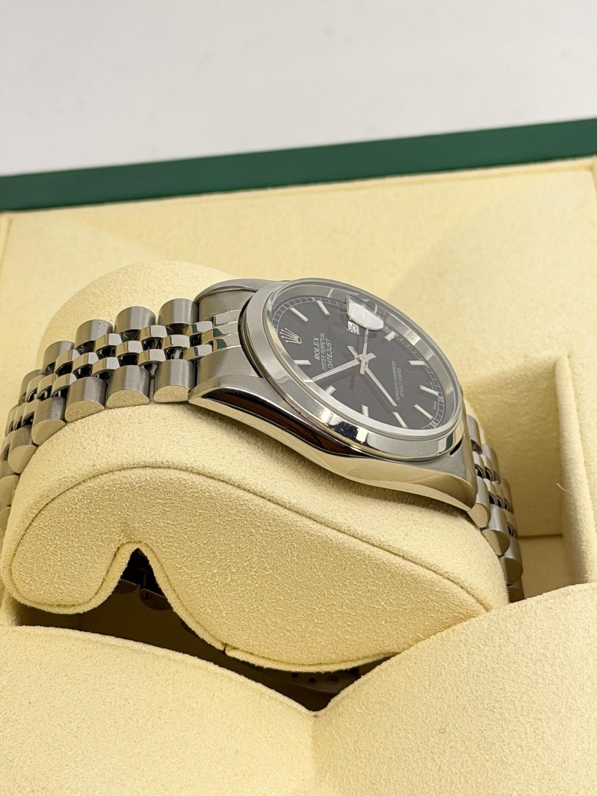 Marca Rolex Modello (Orologio) Datejust 36 Numero di referenza 16200 Carica Automatico Materiale della cassa Acciaio Materiale cinturino Acciaio Anno di produzione 2004 Condizione Ottimo (di seconda mano, segni di usura assenti o appena visibili) Corredo documenti originali, NO BOX Calibro Carica Automatico Cassa Materiale della cassa Acciaio Diametro 36 mm Impermeabile 10 ATM Materiale lunetta Acciaio Vetro Vetro zaffiro Cinturino Materiale cinturino Acciaio Colore cinturino Acciaio Chiusura Déployante Materiale chiusura Acciaio - COMMISSIONE D’ASTA 25%