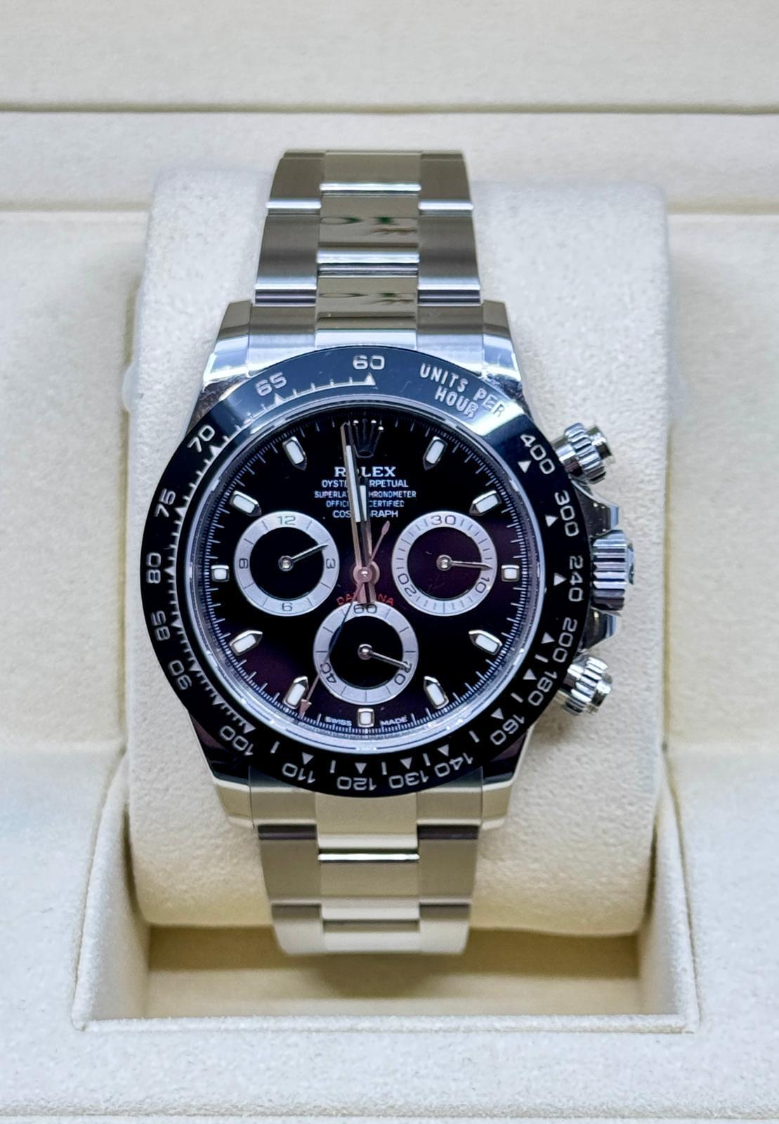 Marca Rolex Modello (Orologio) Daytona Numero di referenza 116500LN anno 2020 approssimativo Carica Automatico Materiale della cassa Acciaio Materiale cinturino Acciaio Condizione Usato (Ottimo) L'articolo presenta segni di usura lievi, come ad esempio graffi leggeri, ma non percepibili al tatto. Corredo documenti originali, no box Genere Orologio da uomo/Unisex Carica Automatico Materiale della cassa Acciaio Diametro 40 mm Impermeabile 10 ATM Materiale lunetta Ceramica Vetro Vetro zaffiro Quadrante Nero Numeri sul quadrante Senza numeri Cinturino Materiale cinturino Acciaio Colore cinturino Acciaio Chiusura Déployante Materiale chiusura Acciaio - COMMISSIONE D’ASTA 25%