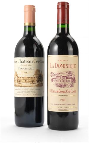 SELEZIONE BORDEAUX Lotto di n. 2 bottiglie: Saint Emilion Grand Cru Classè Chateau La Dominique 1990 Pomerol Vieux Chateau Certan 1990 Rosso, lt. 0,75