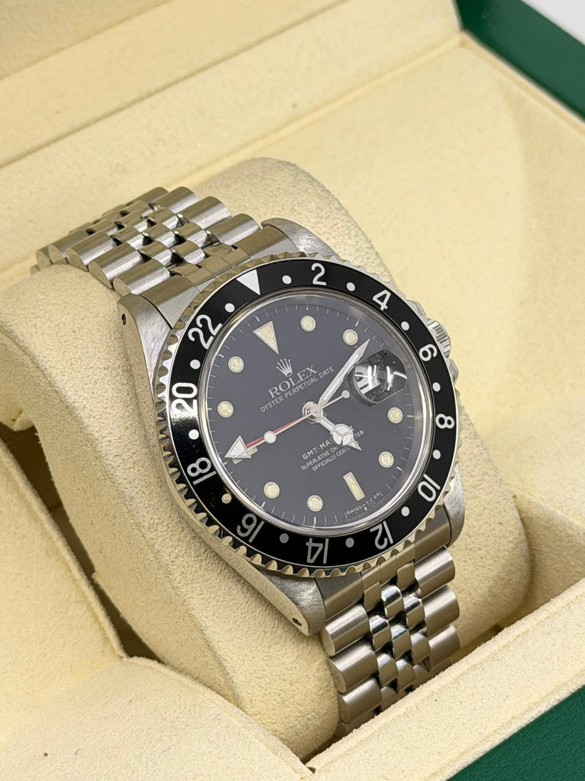 Marca Rolex Modello (Orologio) GMT-Master II Numero di referenza 16710 Carica Automatico Materiale della cassa Acciaio Materiale cinturino Acciaio Condizione Usato L'articolo presenta segni di usura lievi, come ad esempio graffi leggeri, ma non percepibili al tatto. No documenti originali Rolex, no box Carica Automatico Cassa Materiale della cassa Acciaio Diametro 40 mm Impermeabile 10 ATM Materiale lunetta Acciaio Vetro Vetro zaffiro Quadrante Nero Anni 90 Numeri sul quadrante Senza numeri Cinturino Materiale cinturino Acciaio Colore cinturino Acciaio Chiusura Déployante Materiale chiusura Acciaio Funzioni Data, GMT - COMMISSIONE D’ASTA 25%