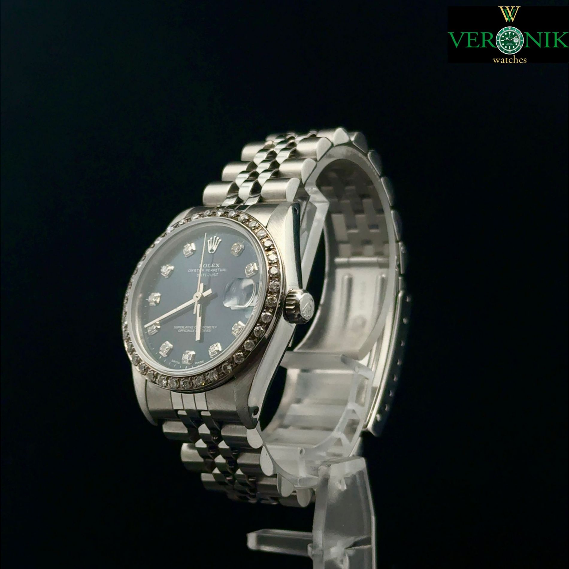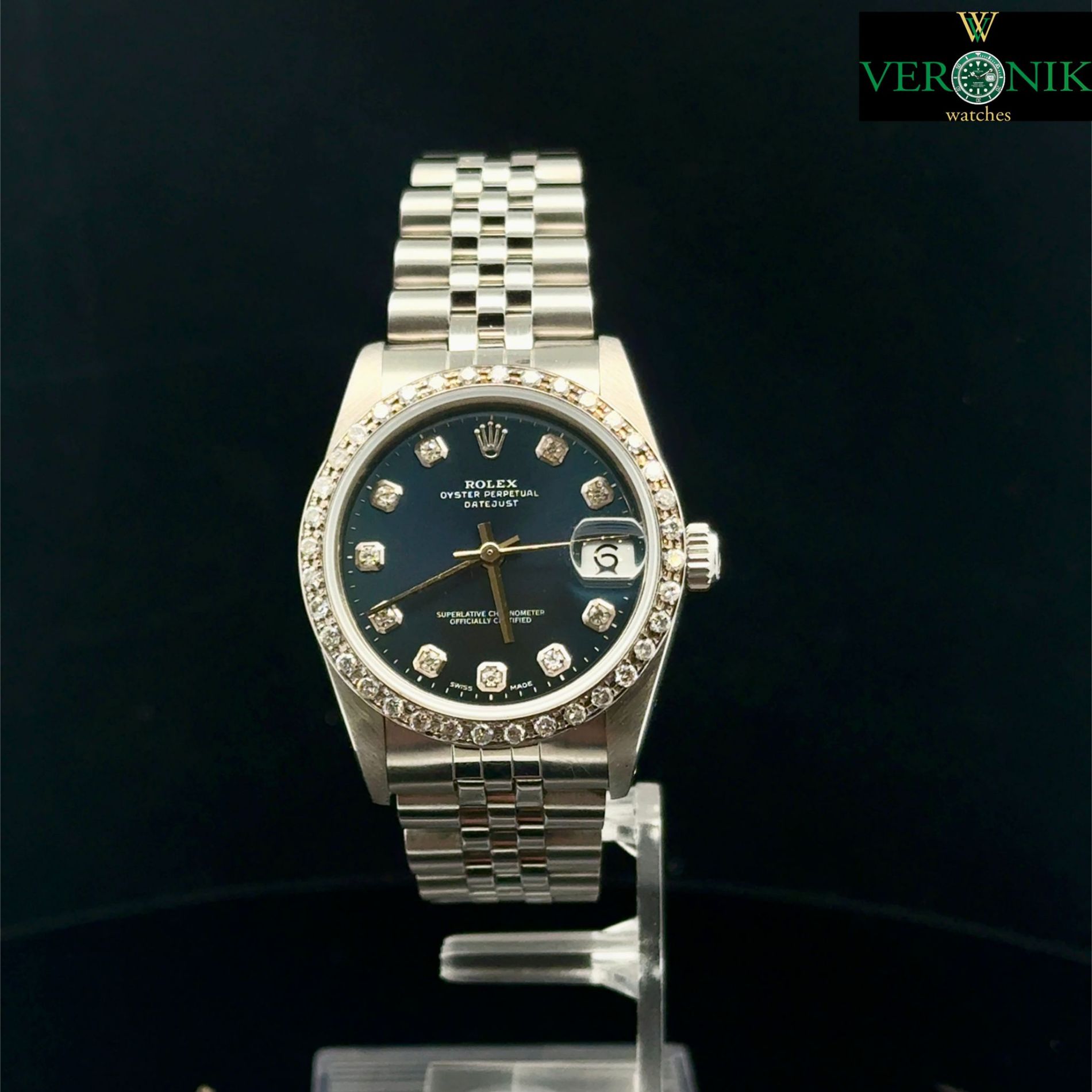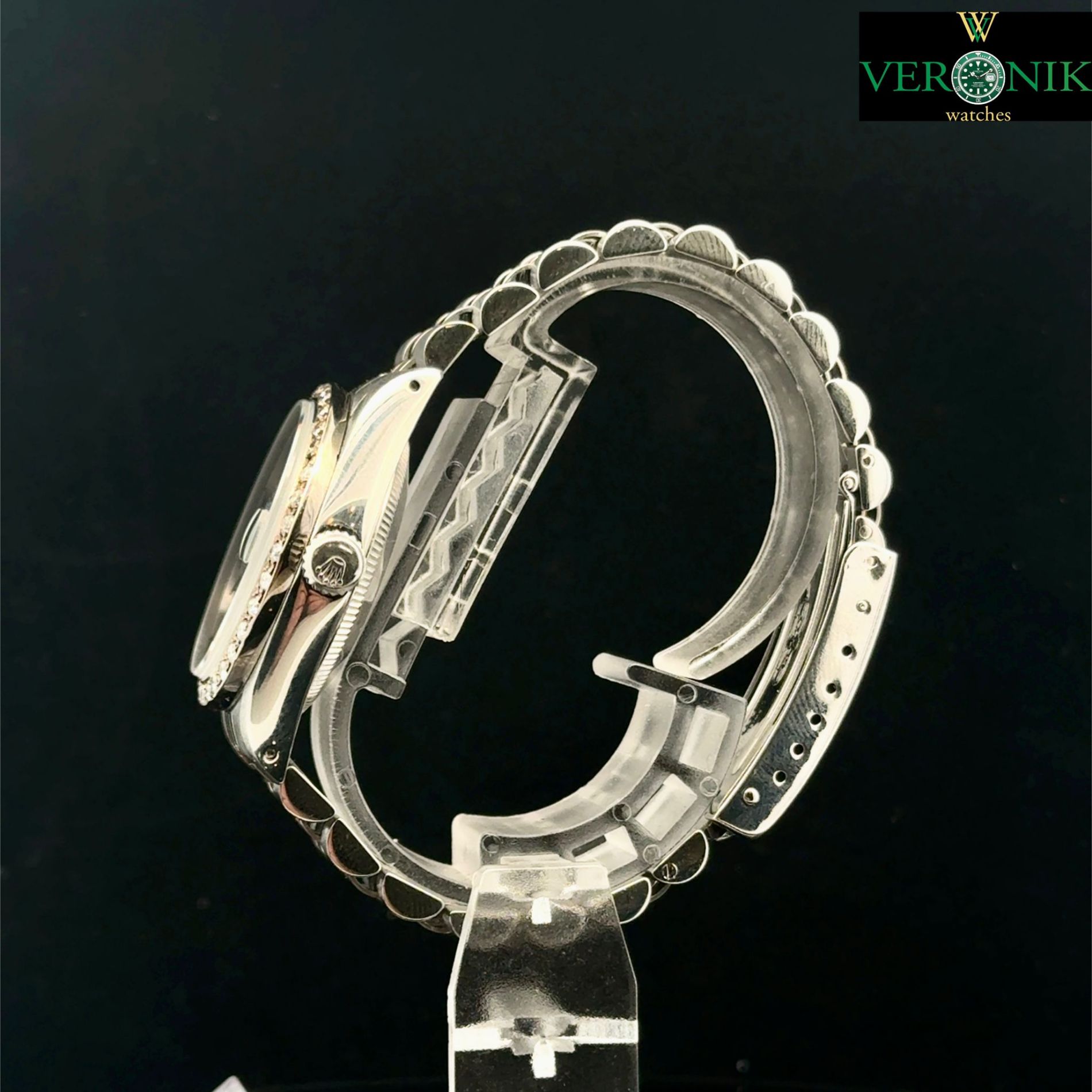 Marca Rolex Modello (Orologio) Datejust 31 Numero di referenza 68274 Carica Automatico Materiale della cassa acciaio/Oro bianco Materiale cinturino Acciaio Anno di produzione Non disponibile Corredo No scatola originale, senza documenti originali Carica Automatico Diametro 31 mm Quadrante con diamanti applicati successivamente Ghiera aftermarket con diamanti - COMMISSIONE D’ASTA 25%