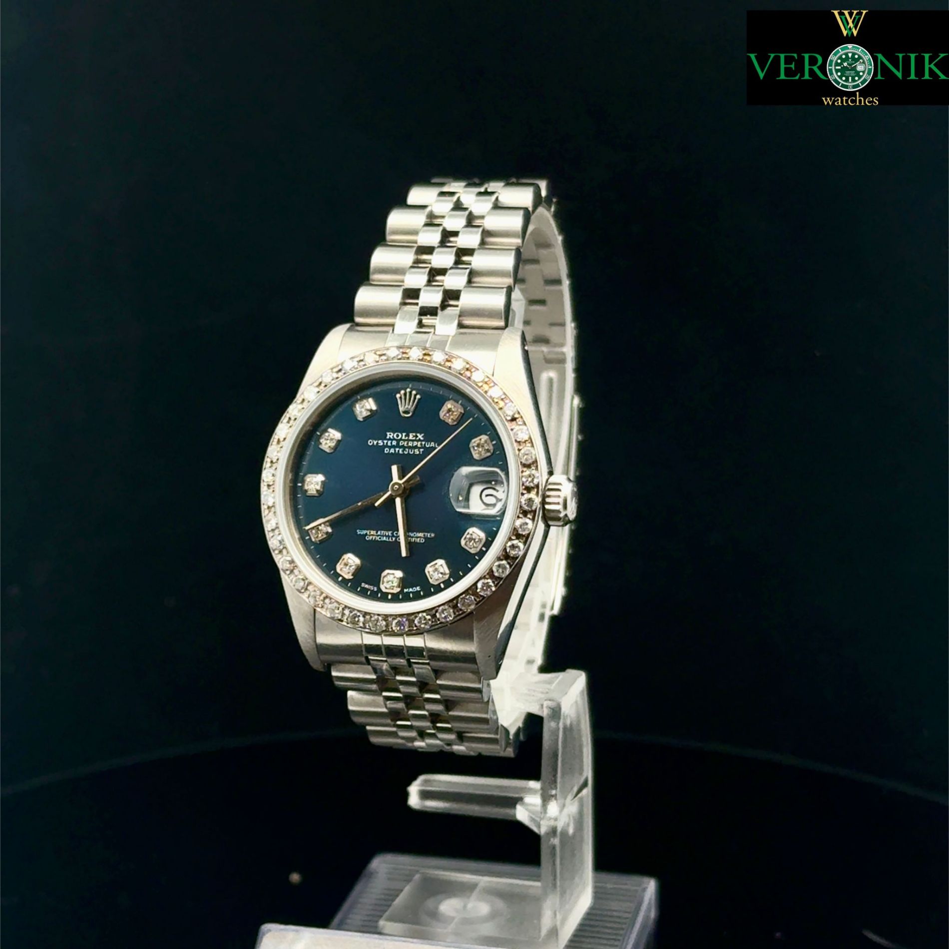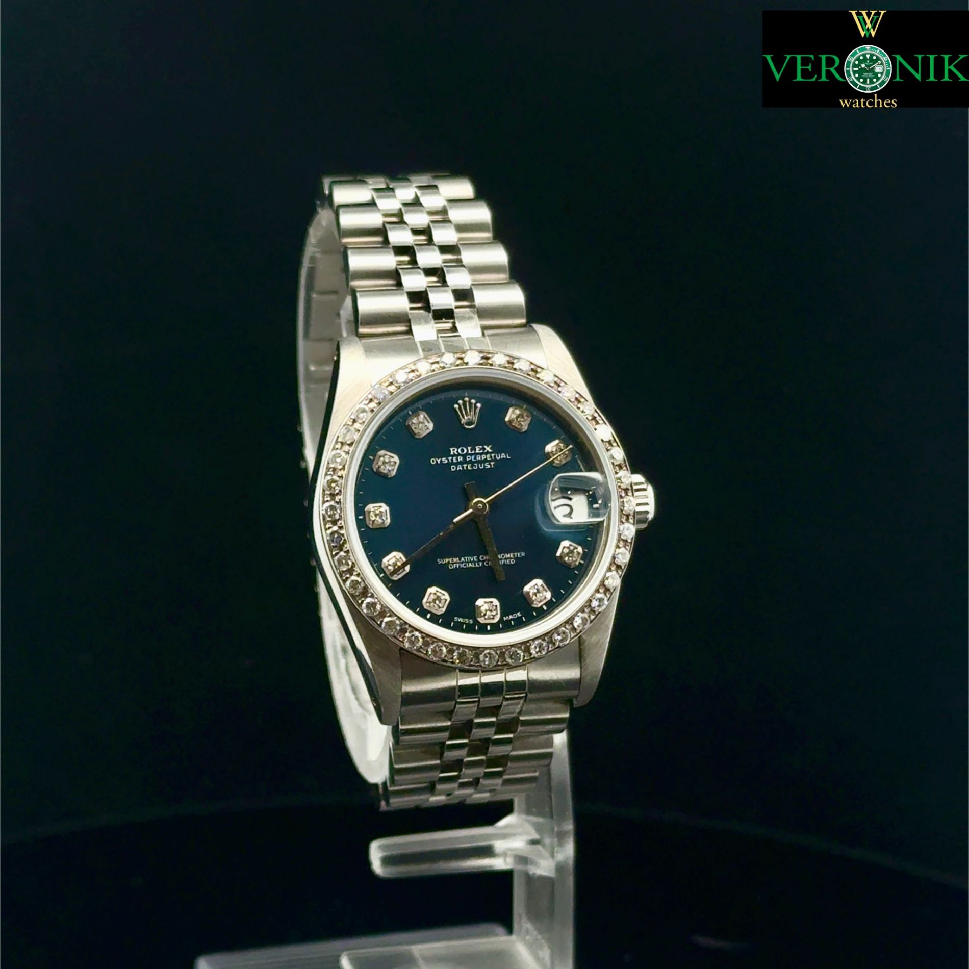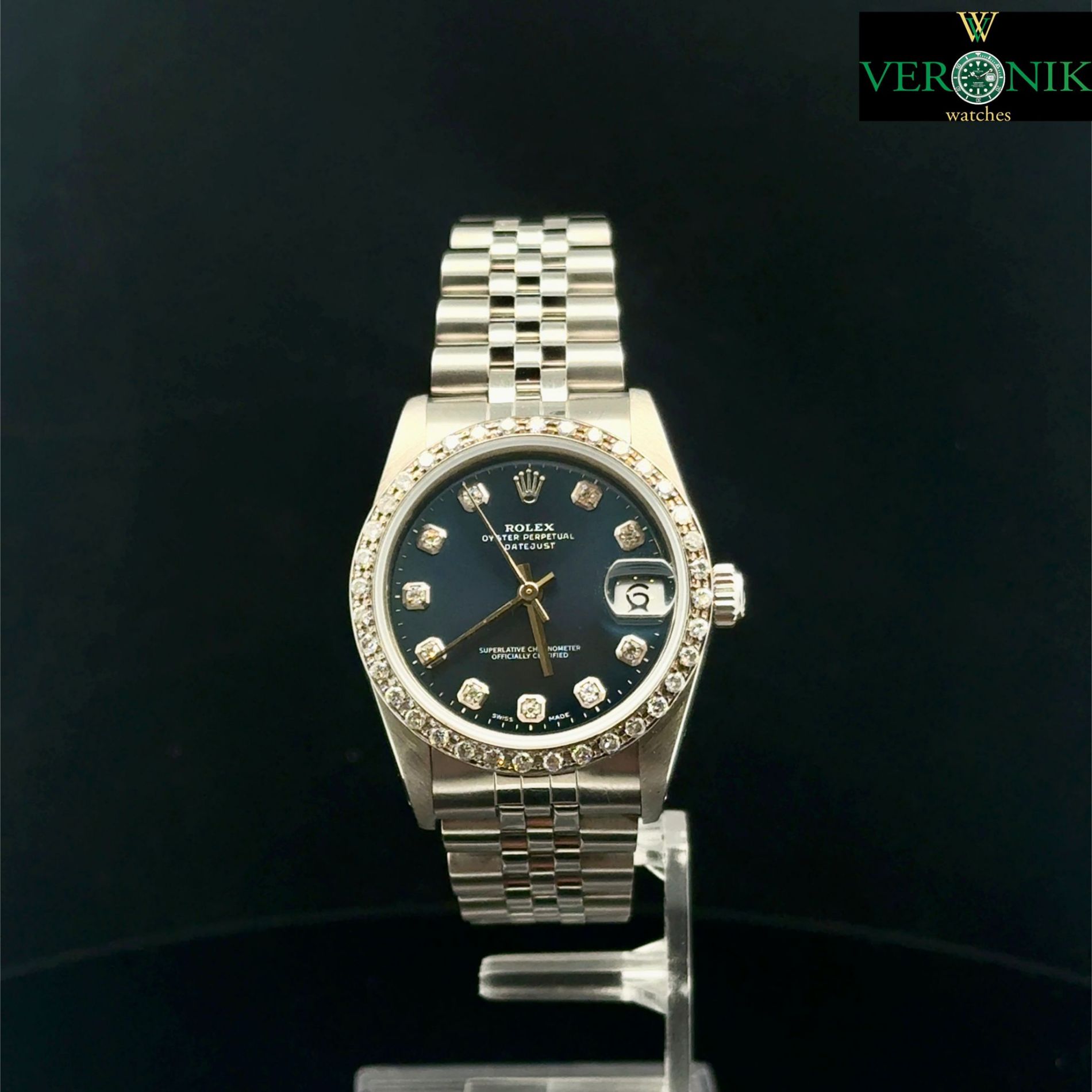 Marca Rolex Modello (Orologio) Datejust 31 Numero di referenza 68274 Carica Automatico Materiale della cassa acciaio/Oro bianco Materiale cinturino Acciaio Anno di produzione Non disponibile Corredo No scatola originale, senza documenti originali Carica Automatico Diametro 31 mm Quadrante con diamanti applicati successivamente Ghiera aftermarket con diamanti - COMMISSIONE D’ASTA 25%