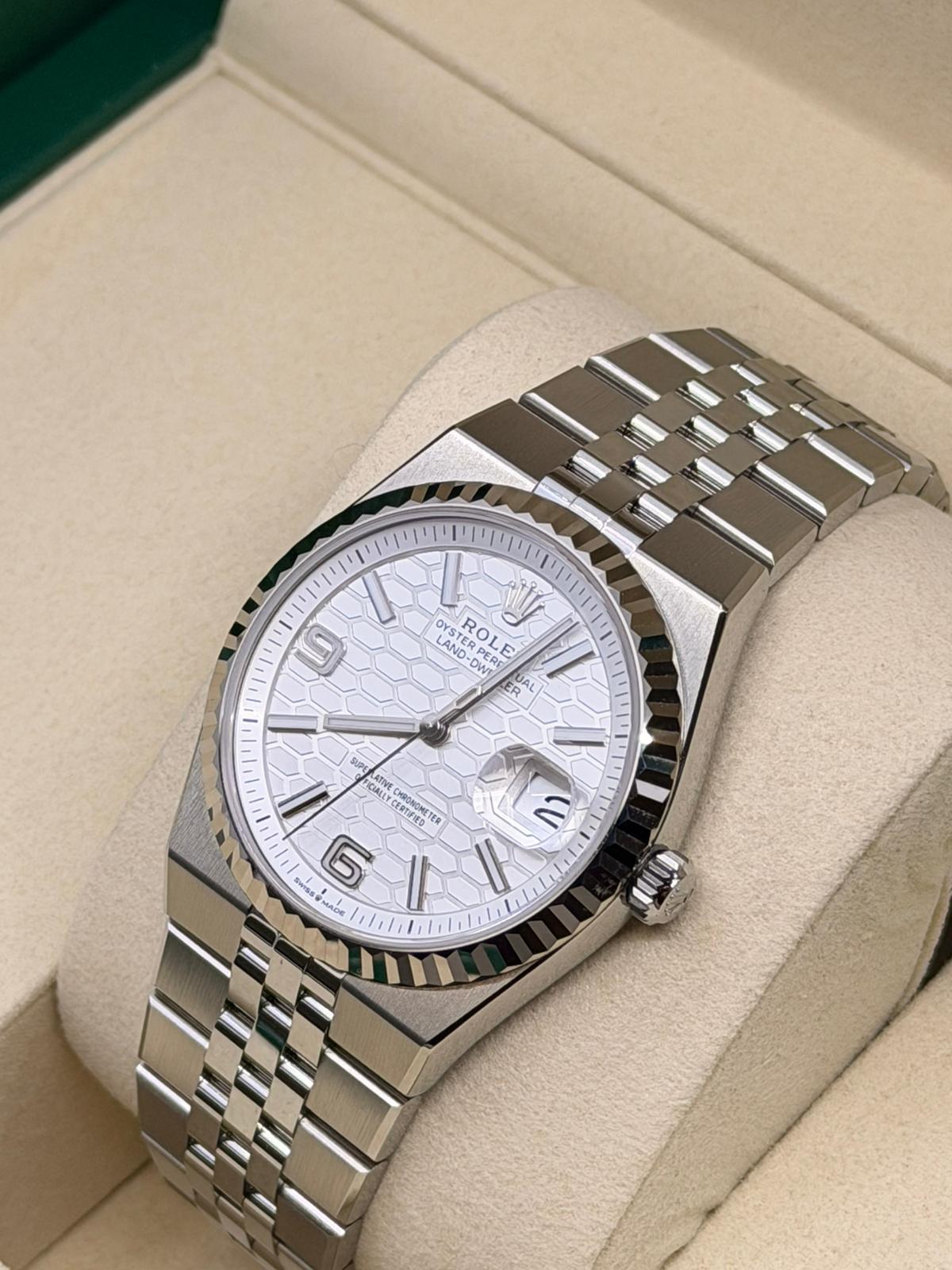 Marca Rolex Modello (Orologio) Land-Dweller Numero di referenza 127234 Carica Automatico Materiale della cassa Acciaio Materiale cinturino Acciaio Anno di produzione 2026 Condizione nuovo e mai indossato Con scatola originale e documenti originali Carica Automatico Cassa Materiale della cassa Acciaio Diametro 36 mm Quadrante Bianco Cinturino Materiale cinturino Acciaio Colore cinturino Acciaio - COMMISSIONE D’ASTA 25%