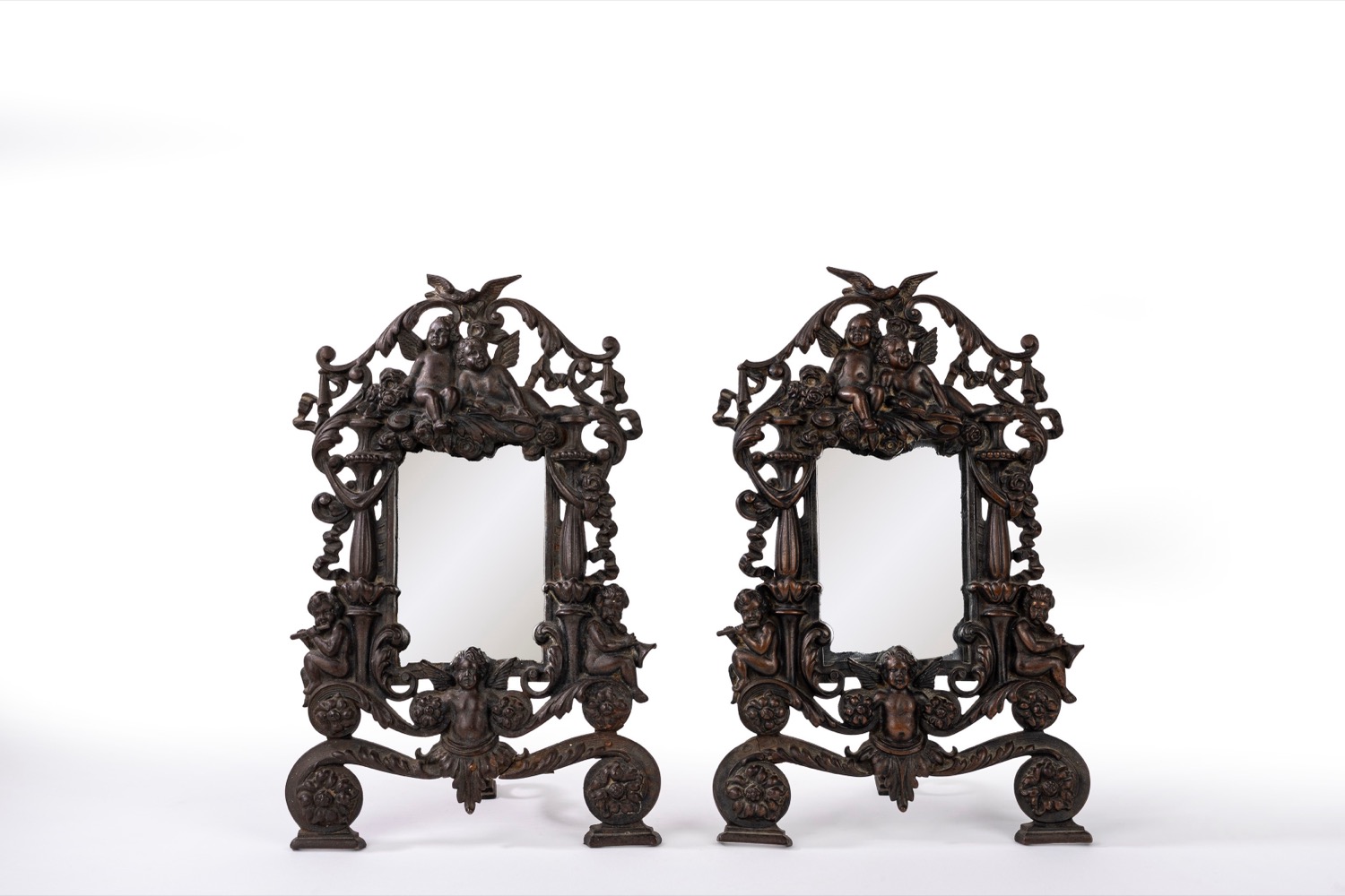 Coppia di cornici in bronzo con amorini e grottesche, secolo XIX