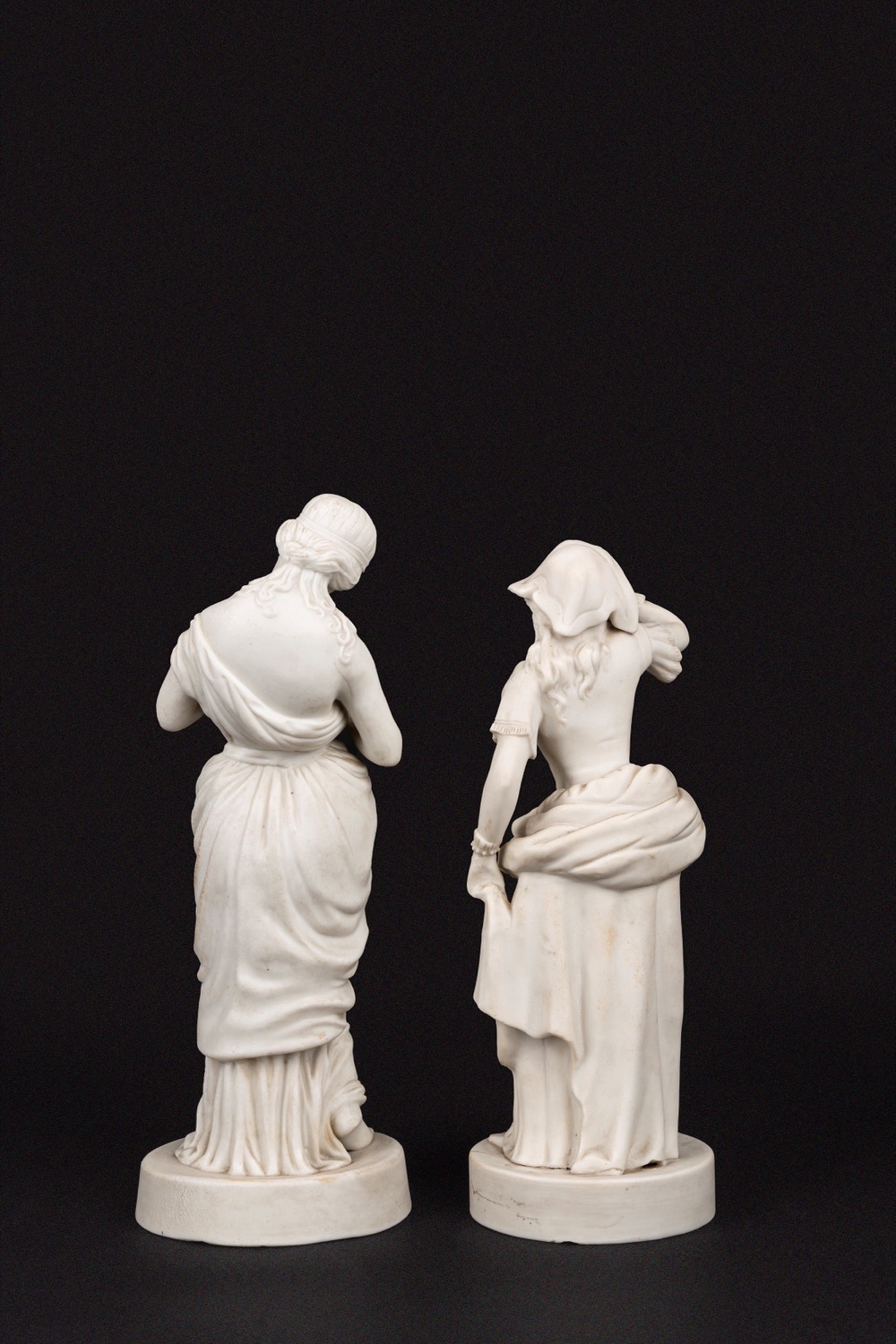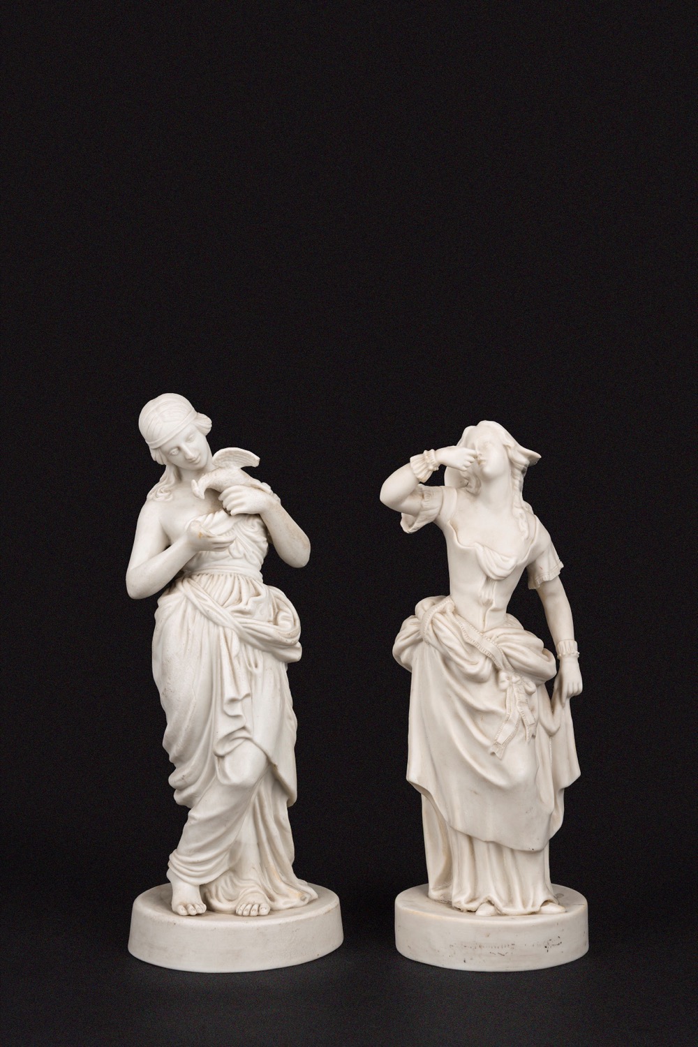 Due sculture in biscuit raffiguranti figure femminili, inizi secolo XX