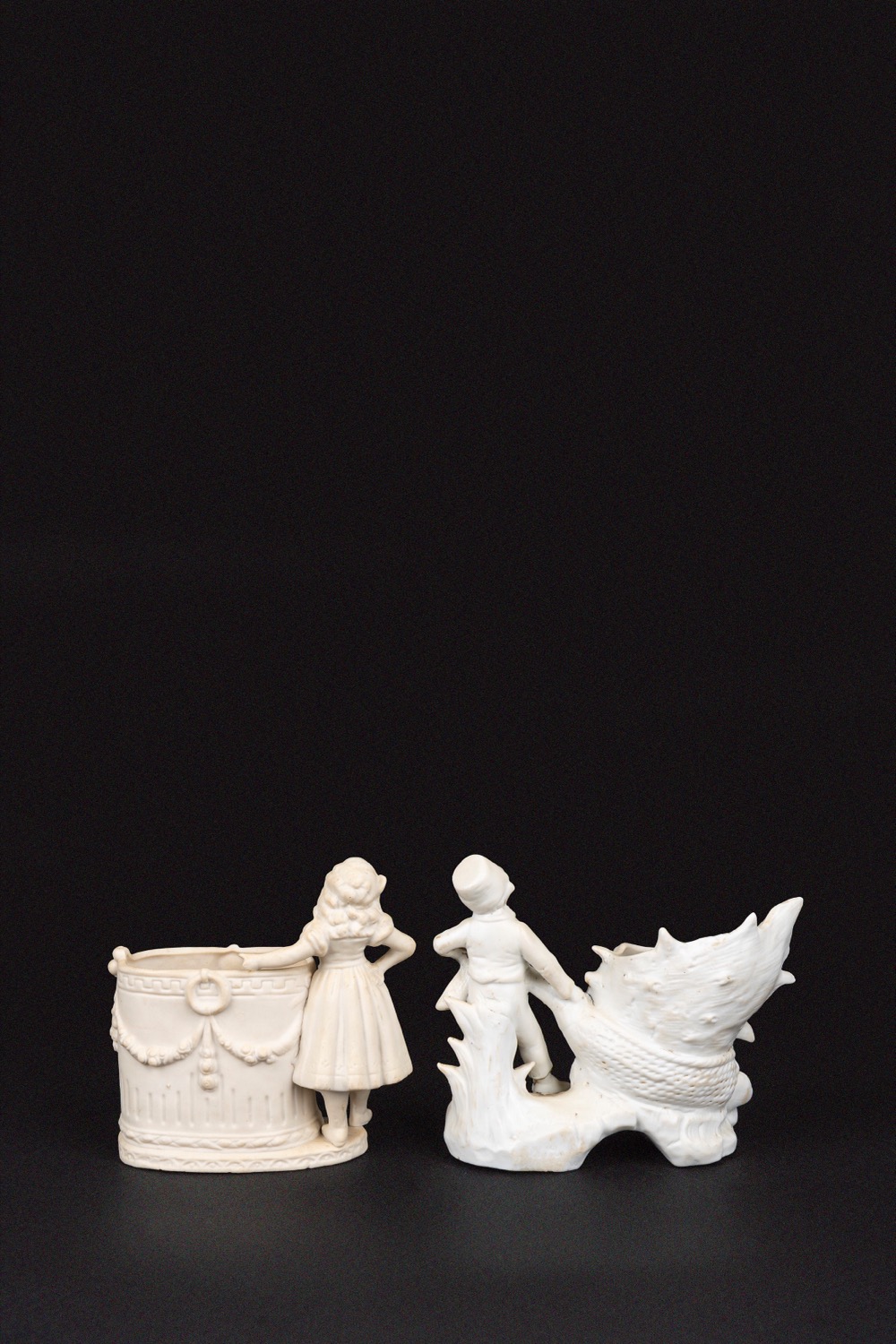 uno con pescatorello e conchiglia, l'altro con bimba e vaso. Difetti e mancanze uno con pescatorello e conchiglia, l'altro con bimba e vaso. Difetti e mancanze