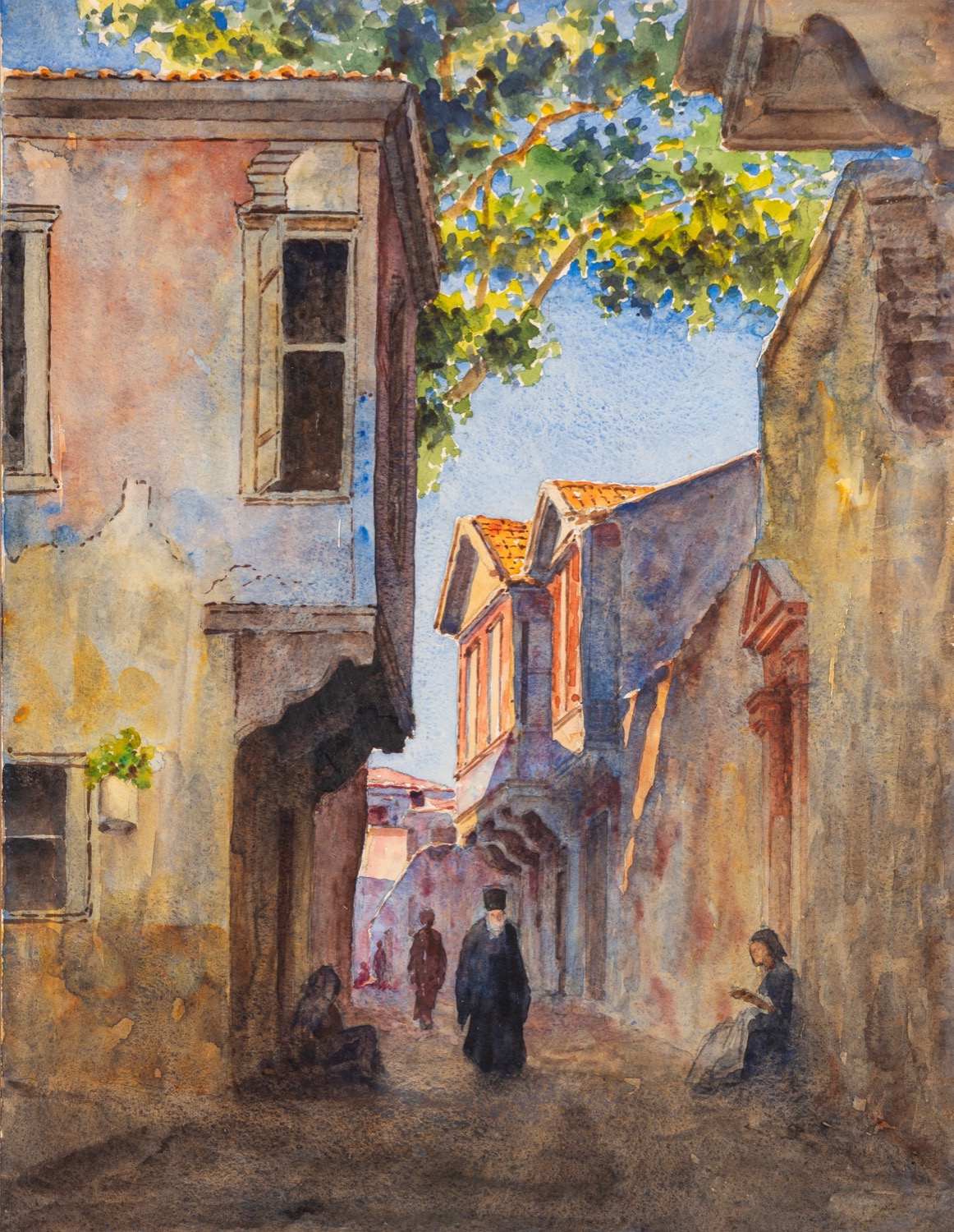 Francesco Perilla (1874 - 1954) - Coppia di acquerelli con scorci di Kos, 1929