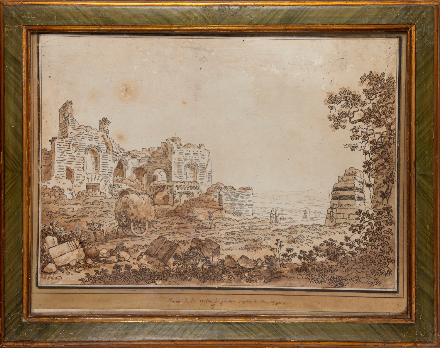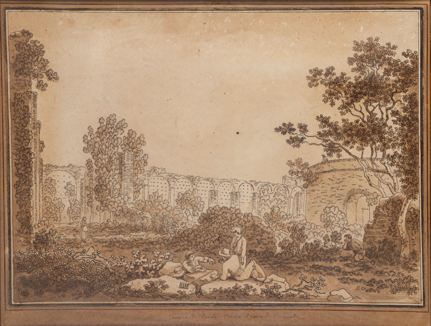 Lot 453 | Scuola italiana, fine secolo XVIII - inizi secolo XIX - Il Tempio di Ercole vicino al Circo di Caracalla; e Rovine della Villa di Seneca sopra la Via Appia