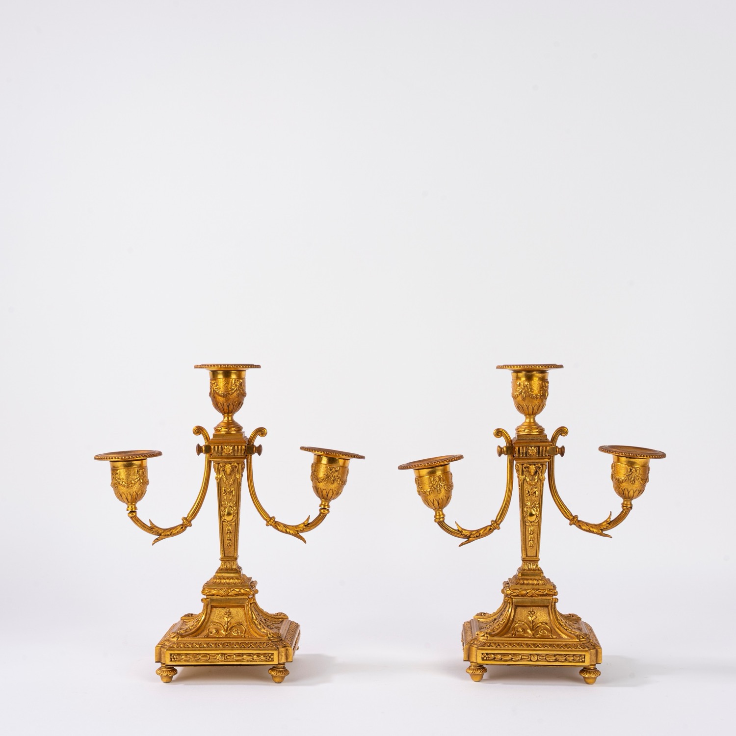 Coppia di candelabri in bronzo dorato a tre luci