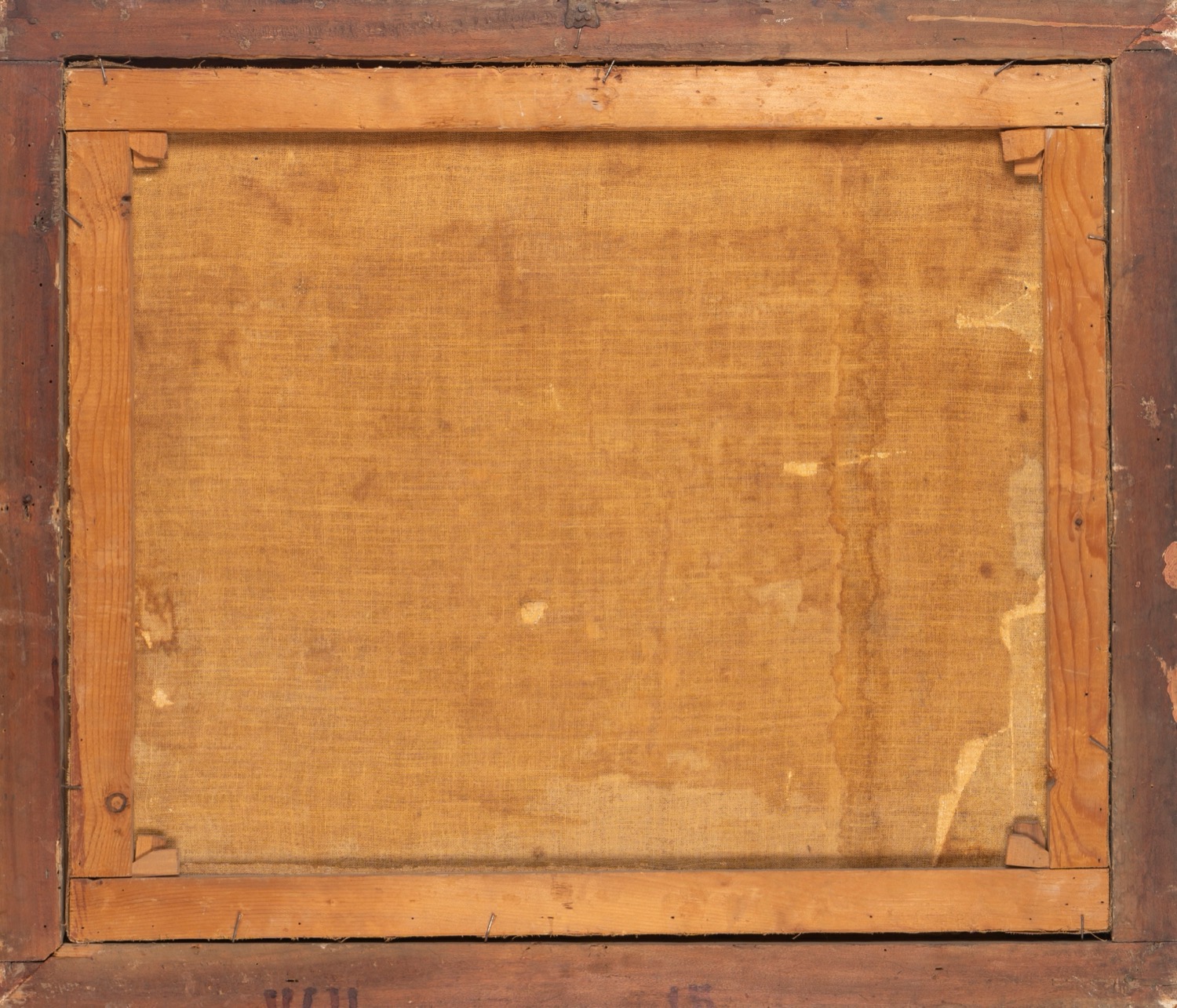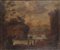 Scuola italiana, secolo XVII - Paesaggio fluviale con astanti e borgo turrito