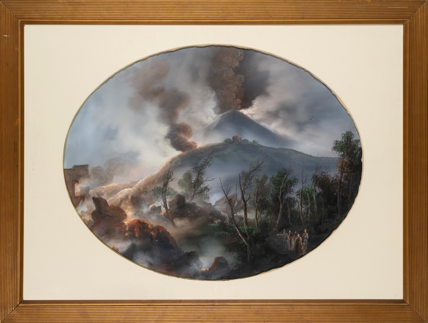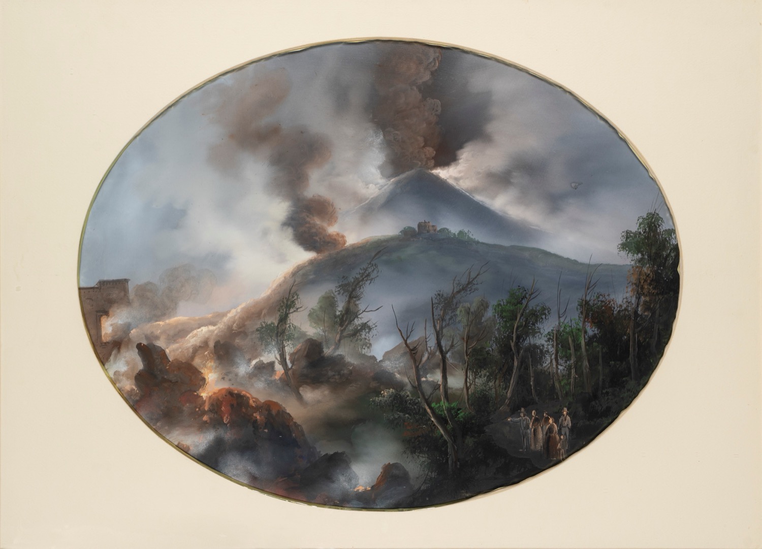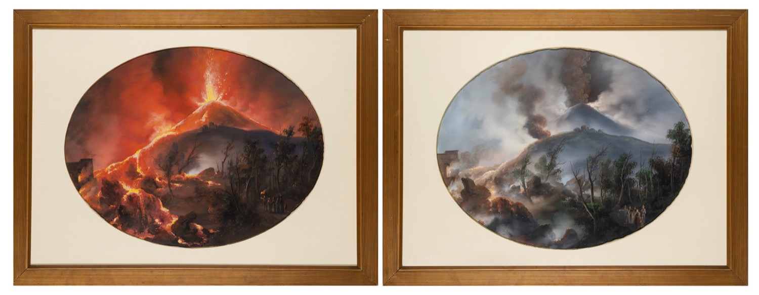 Scuola napoletana, fine del XIX secolo - inizi del XX secolo - Due gouaches su carta raffiguranti l'eruzione del Vesuvio