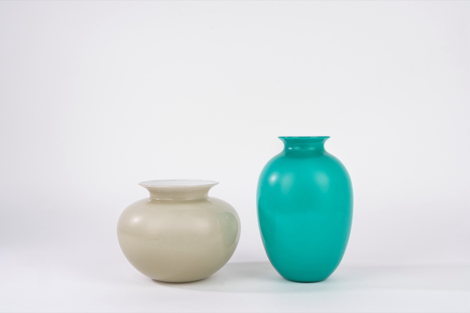 firmati sotto la base a punta di diamante Veart Veneziauno verde acquamarina e uno beige
