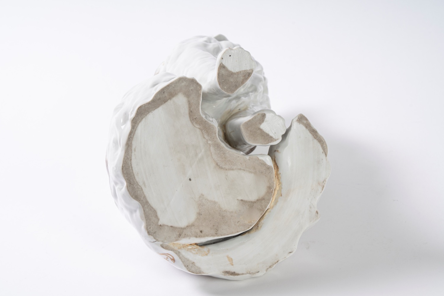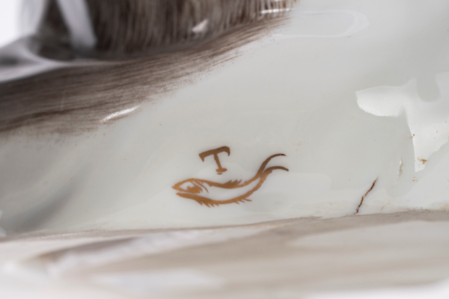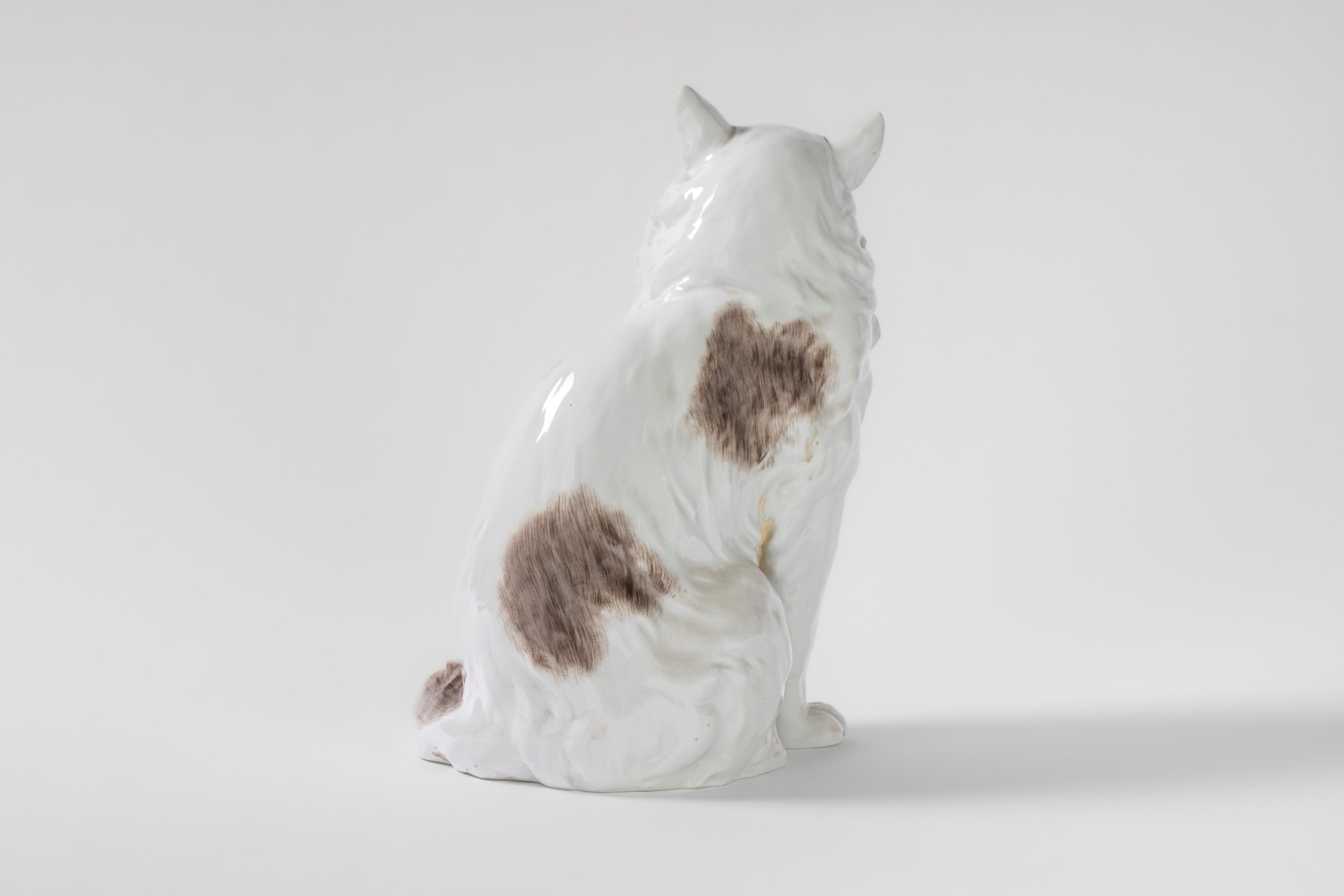 Gatto a grandezza naturale in porcellana bianca e policroma. Carl Thieme, Potschappel, Dresda, 1864-1888