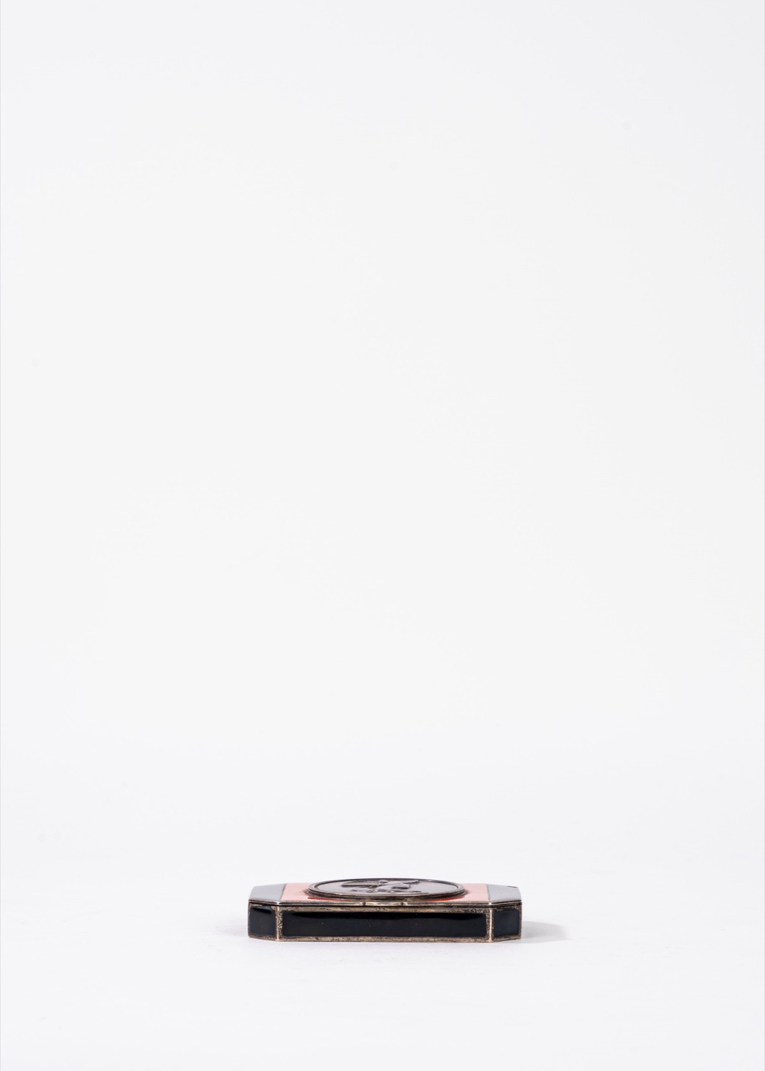 Scatolina in argento e smalti policromi, con motivo a chinoiserie sul coperchio