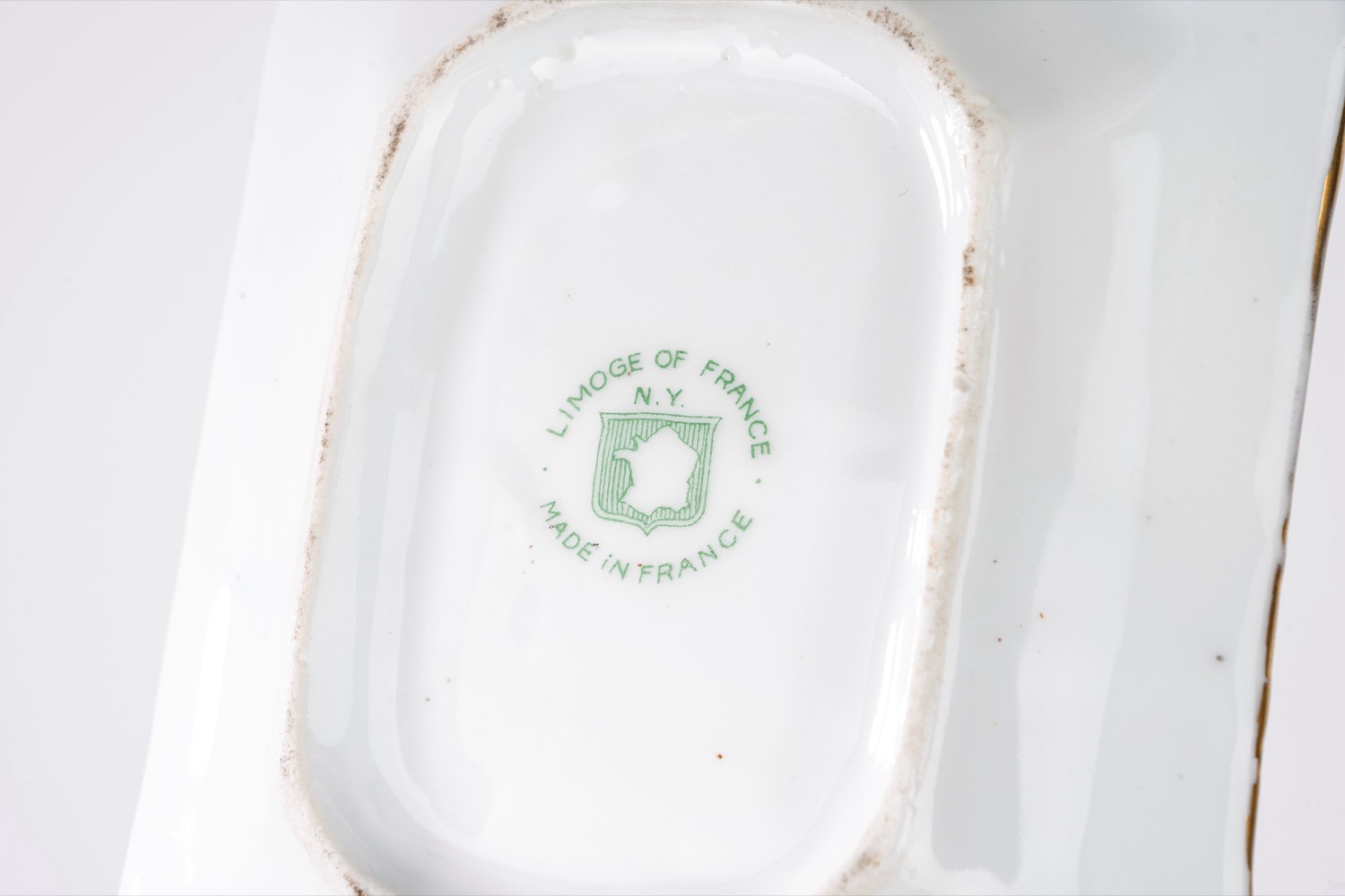 Lotto composto da cinque statuine in porcellana policroma raffiguranti soldati napoleonici e un posacenere in porcellana Limoges con soldato a cavallo, secolo XX