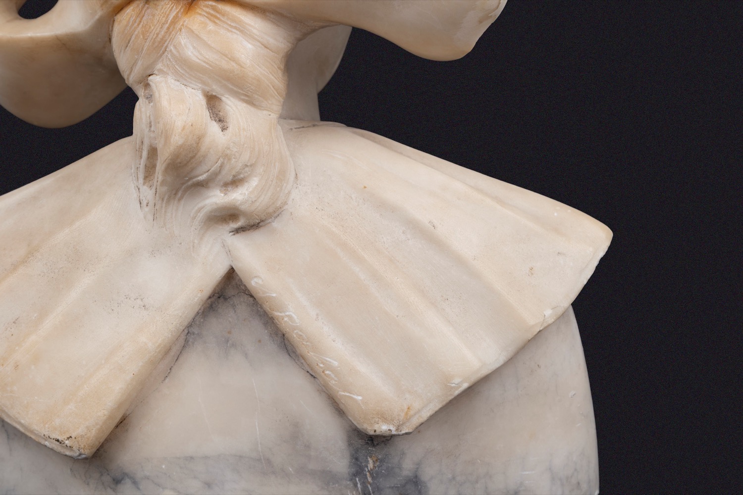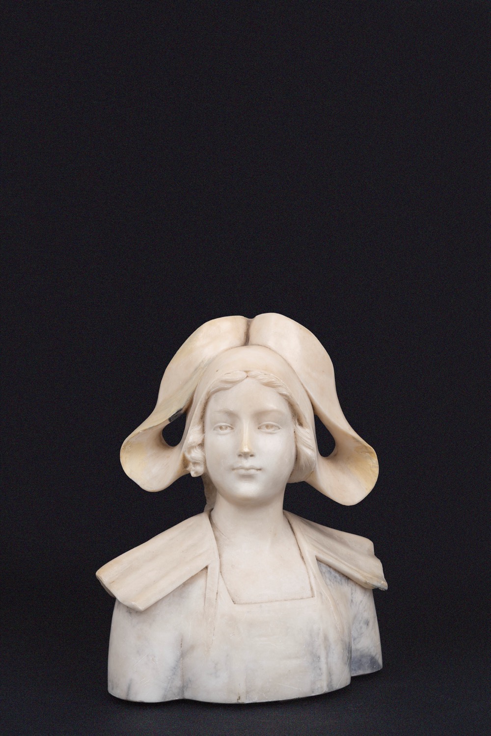 Scuola europea, inizi del XX secolo - Scultura in alabastro raffigurante busto di giovane donna bretone
