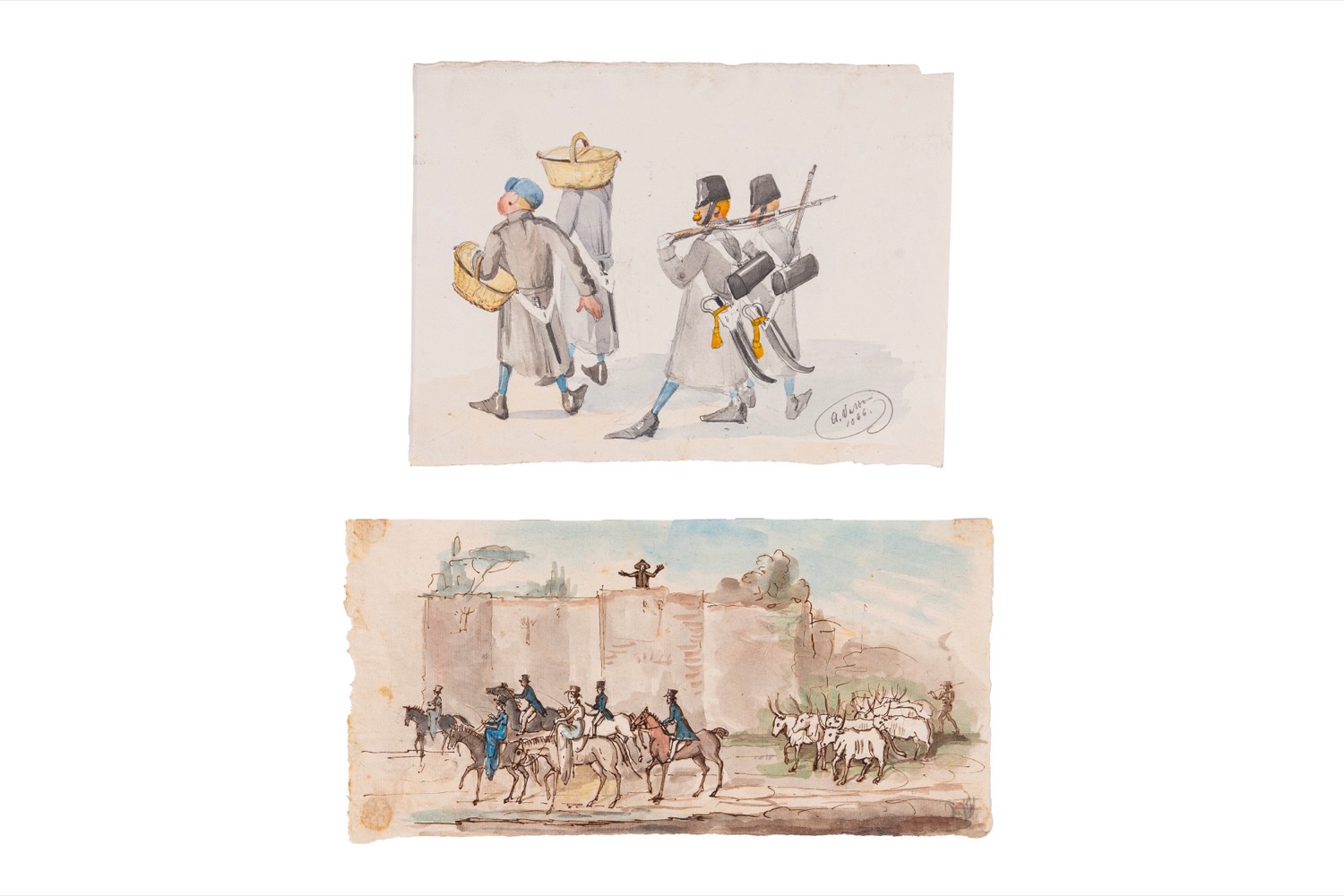 Scuola italiana, secolo XIX - Lotto di due bozzetti con militari e cavallerizzi
