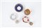 una più grande decorata in blu e oro, una decorata con rose e una a fondo bianco con decori oro e blu