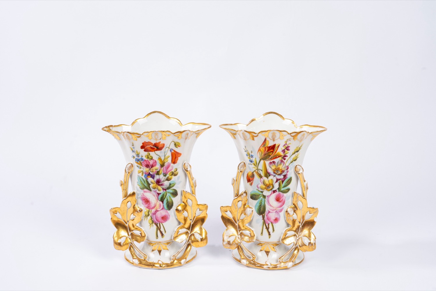 Coppia di vasi in porcellana policroma e oro, Luigi Filippo