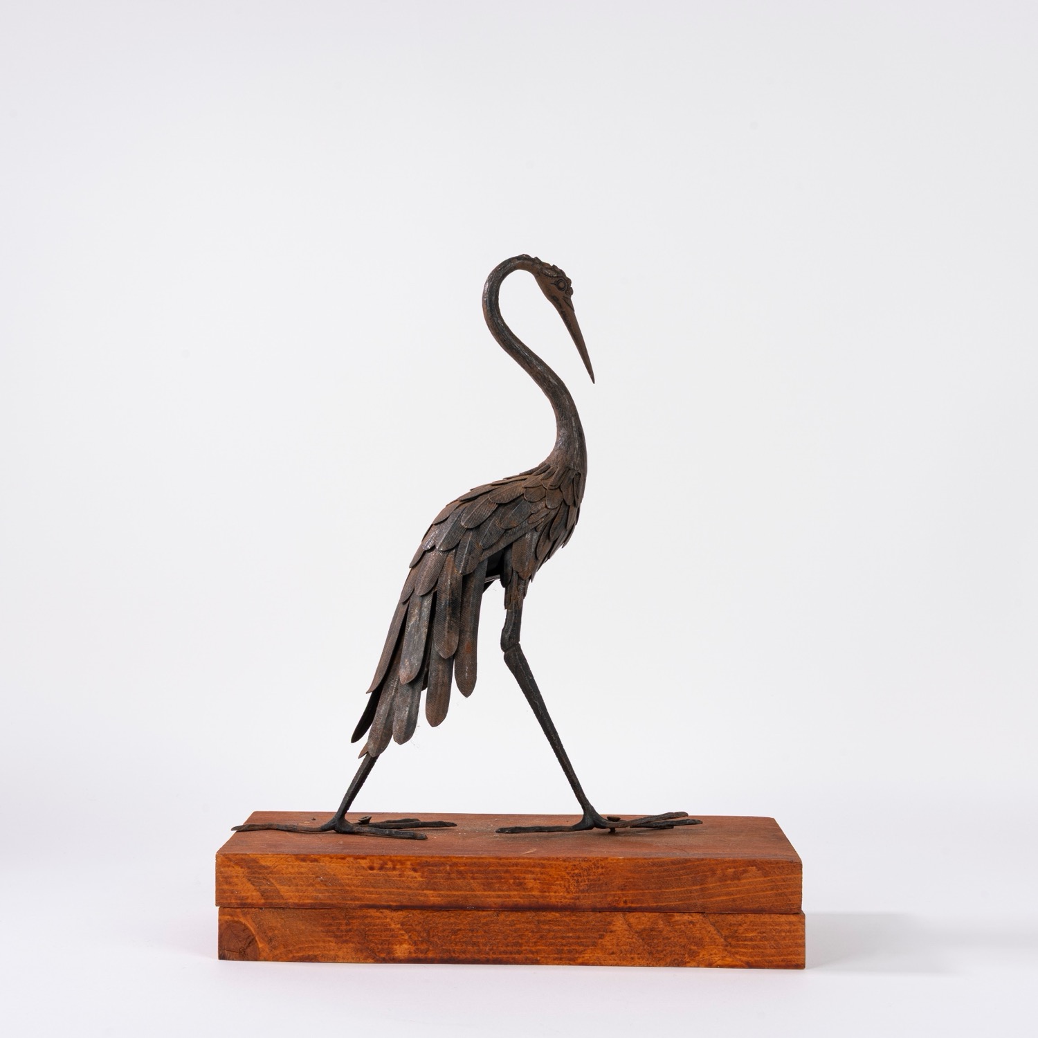 Scultura in bronzo raffigurante gru, inizi secolo XX