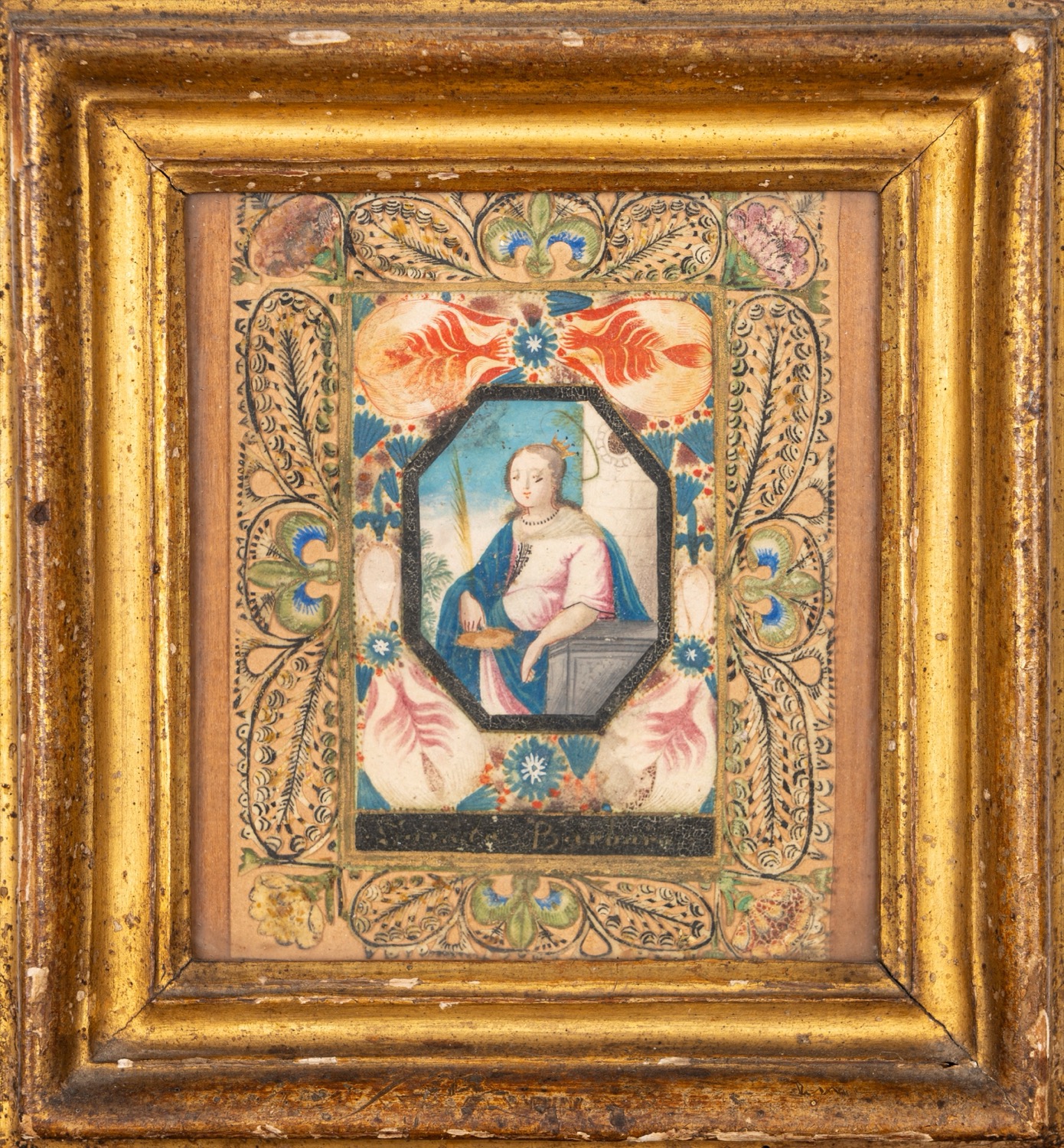 Miniatura su carta raffigurante Santa Barbara, secolo XVII