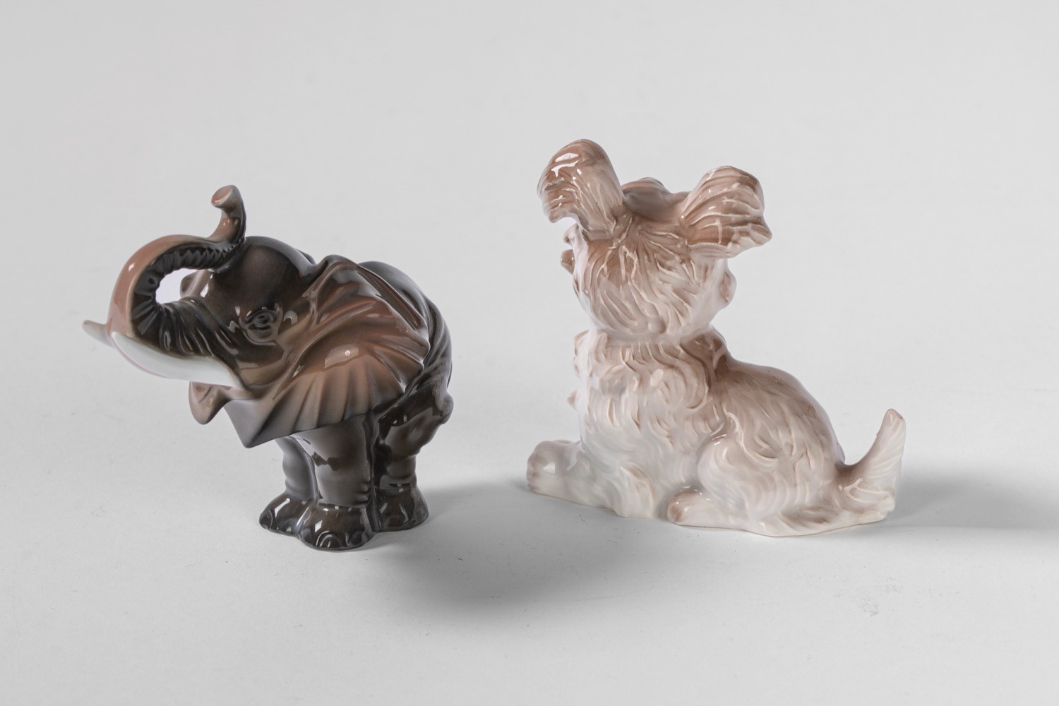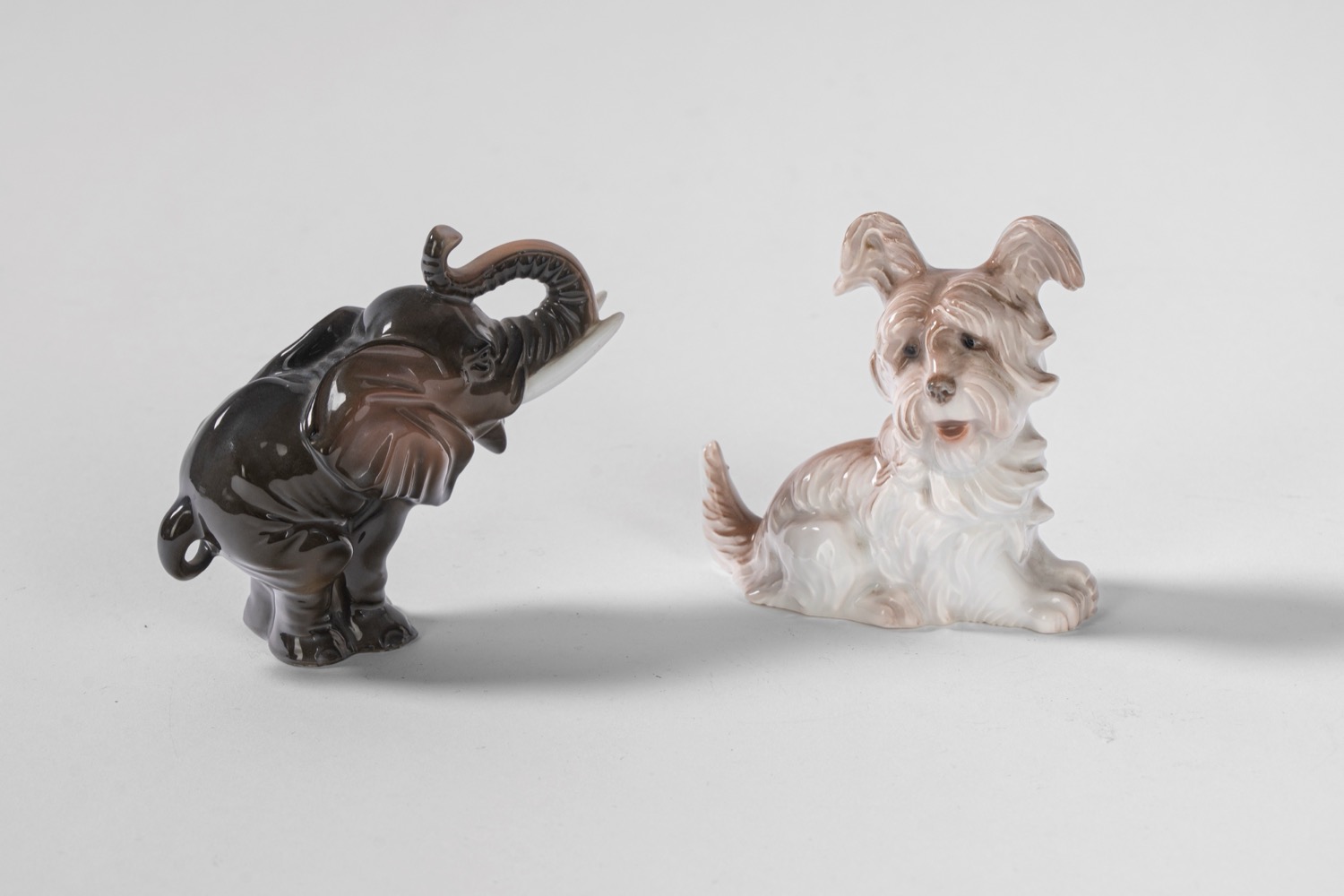 Lot 712 | Un elefantino e un Terrier in porcellana policroma. Rosenthal, Bavaria, secolo XX