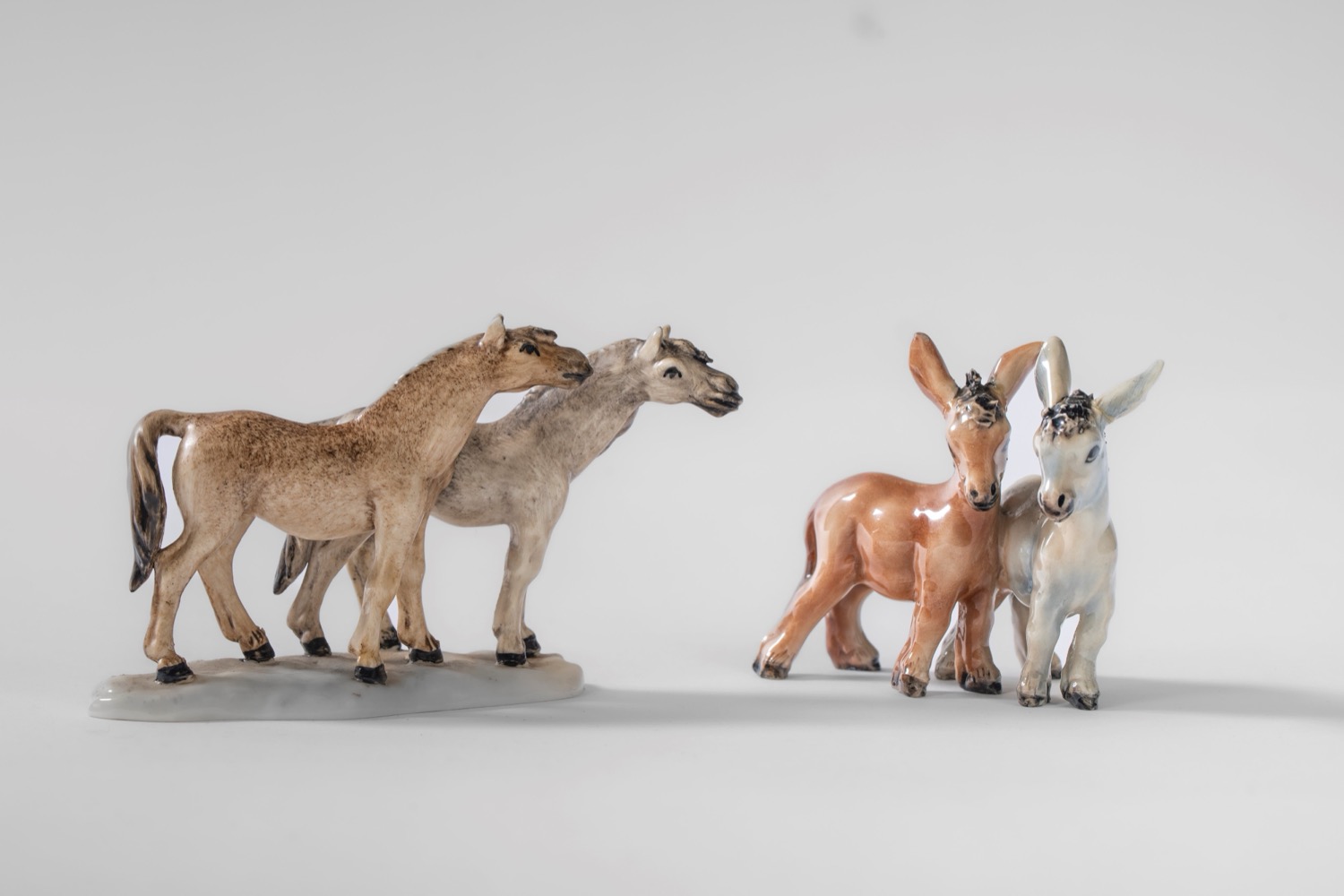 Guido Cacciapuoti (Napoli 1892 - 1953) - Due gruppi in porcellana raffiguranti una coppia di cavalli e una di asinelli