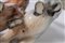 Entrambi i gruppi con firma incisa Cacciapuoti. I due cavalli poggianti su una base sagomata; i due asinelli presentano restauri alle orecchie. Entrambi i gruppi con firma incisa Cacciapuoti. I due cavalli poggianti su una base sagomata; i due asinelli presentano restauri alle orecchie.