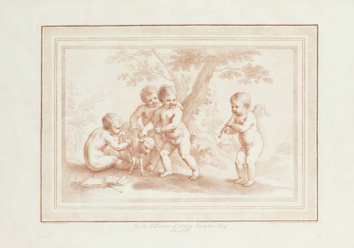 INCISIONE<BR>"Quattro putti intenti a giocare con una pecorella"