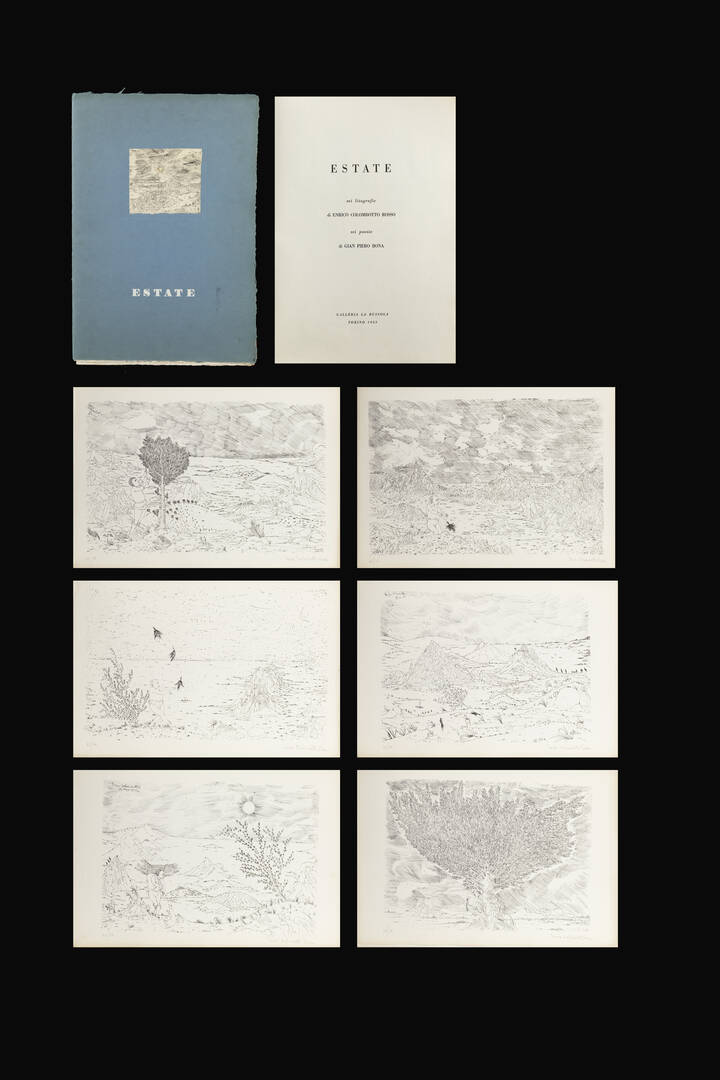 Cartella di 6 litografie di Enrico Colombotto Rosso e 6 poesie di Gian Piero Bona, Galleria La Bussola, Torino, 1953