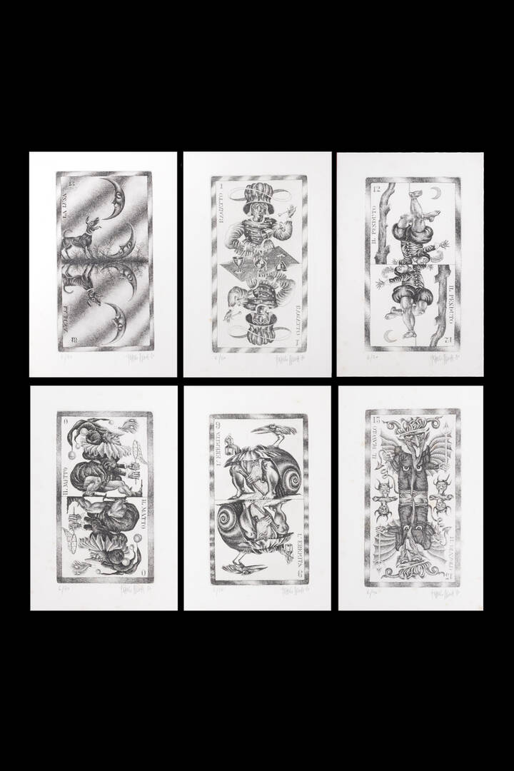 Lotto di sei incisioni raffiguranti "Tarocchi" 1980