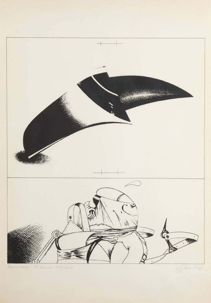 SERGIO SARRI<BR>Torino 1938<BR>"Boomerang. T. Unità" 1973