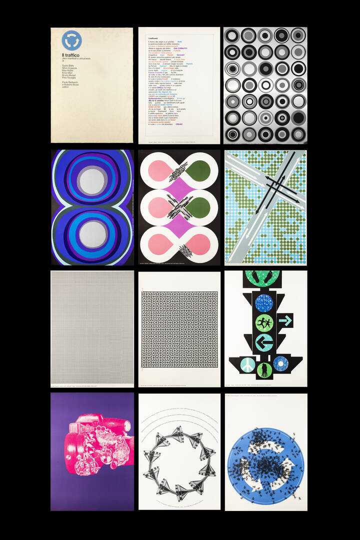 "Il traffico": diceci manifesti e una poesia di Guido Ballo, Silvio Coppola, Max Huber, Enzo Mari, Bruno Munari, Pino Tovaglia, Paolo Bellasich e Roberto Bossi editori