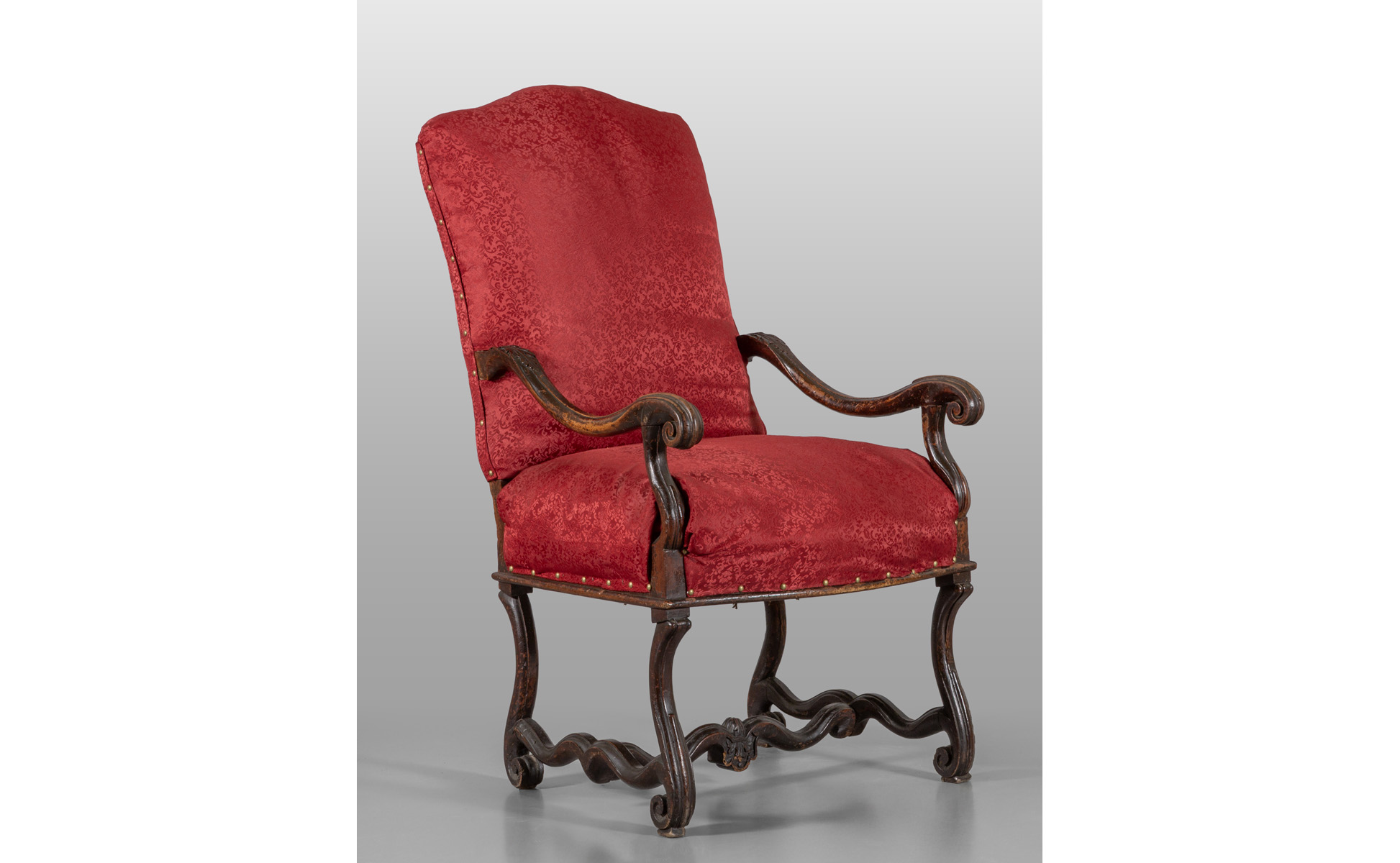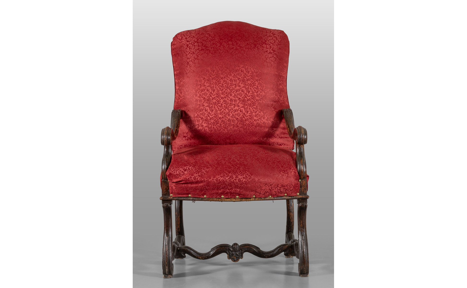 Poltrona ad osso di montone in noce tapezzata in velluto rosso, Genova sec.XVIII