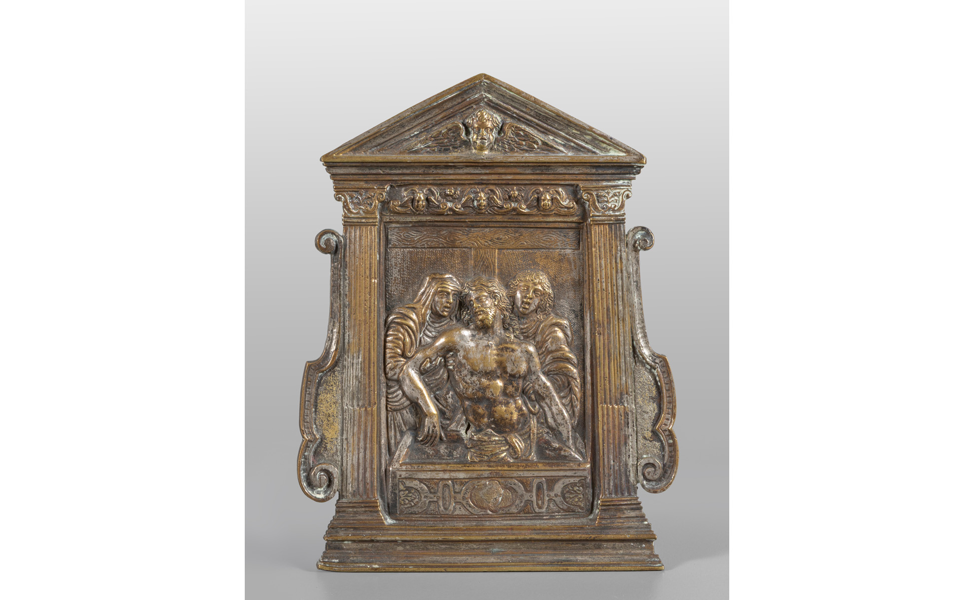 Galeazzo Mondella detto il Moderno (sec.XVI), pace ad edicola in bronzo argentato