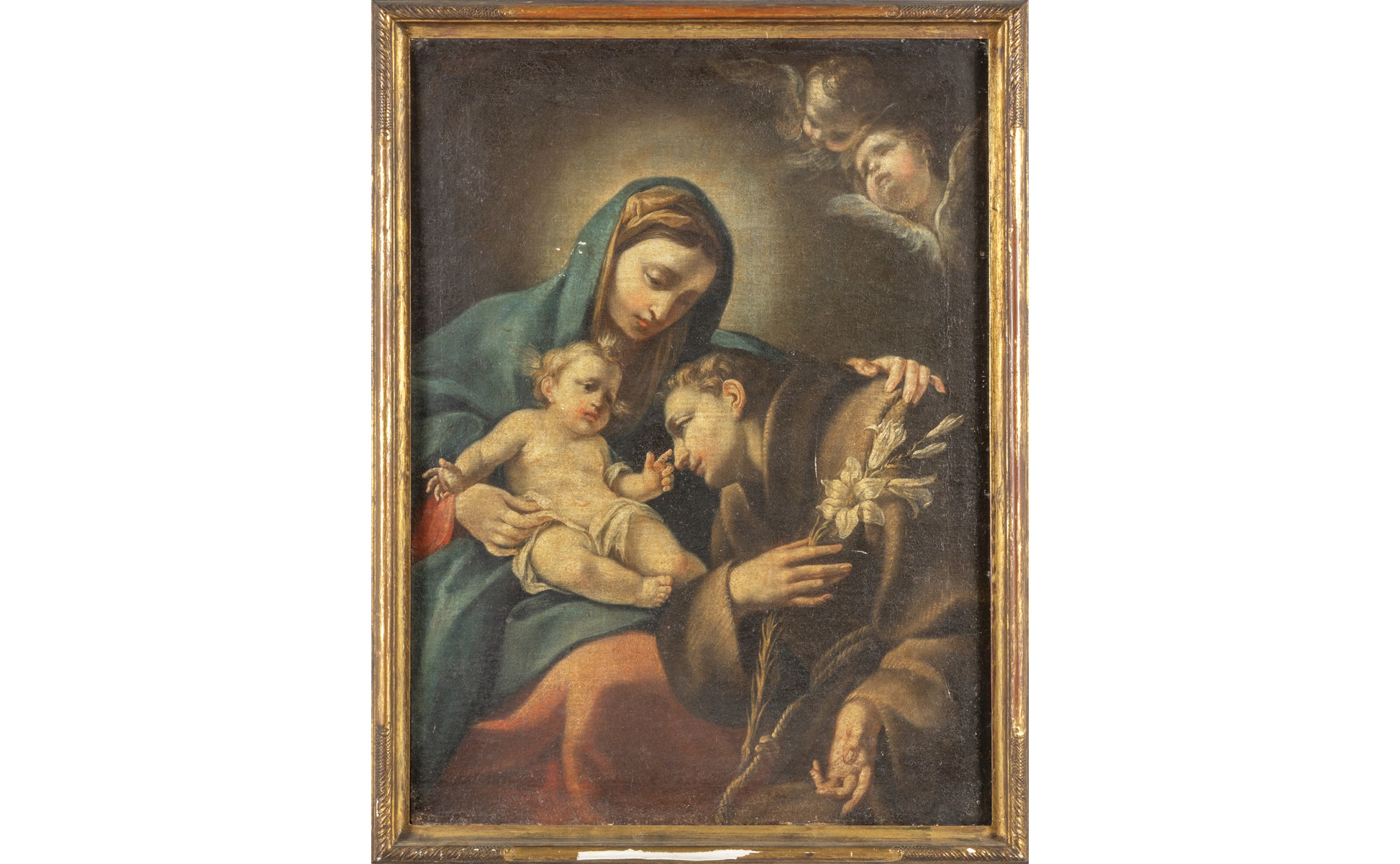Scuola piemontese sec.XVIII "Madonna con Bambino e Sant'Antonio" olio