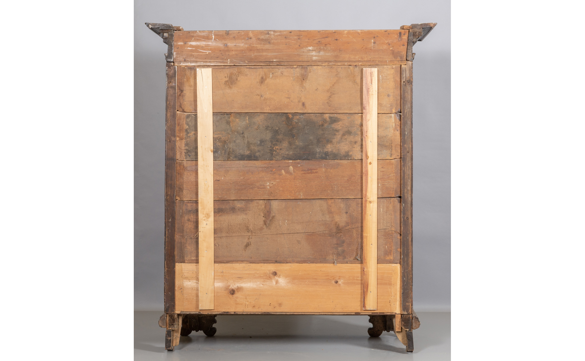 Armadio Luigi XIV in noce, montanti scolpiti a