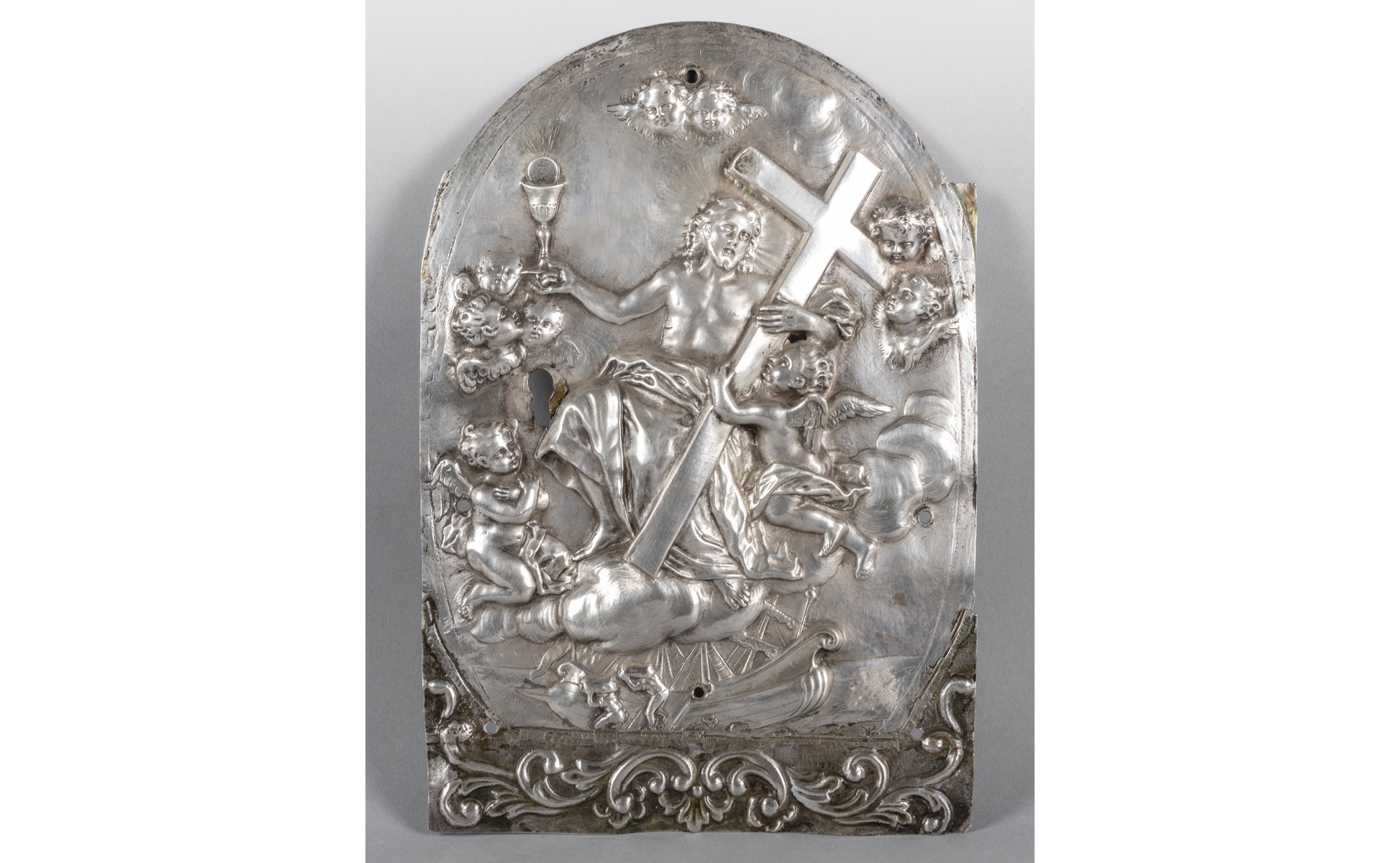 Porta di tabernacolo in argento finemente sbalzato raffigurante la Resurrezione di Gesù, Napoli sec.XVIII