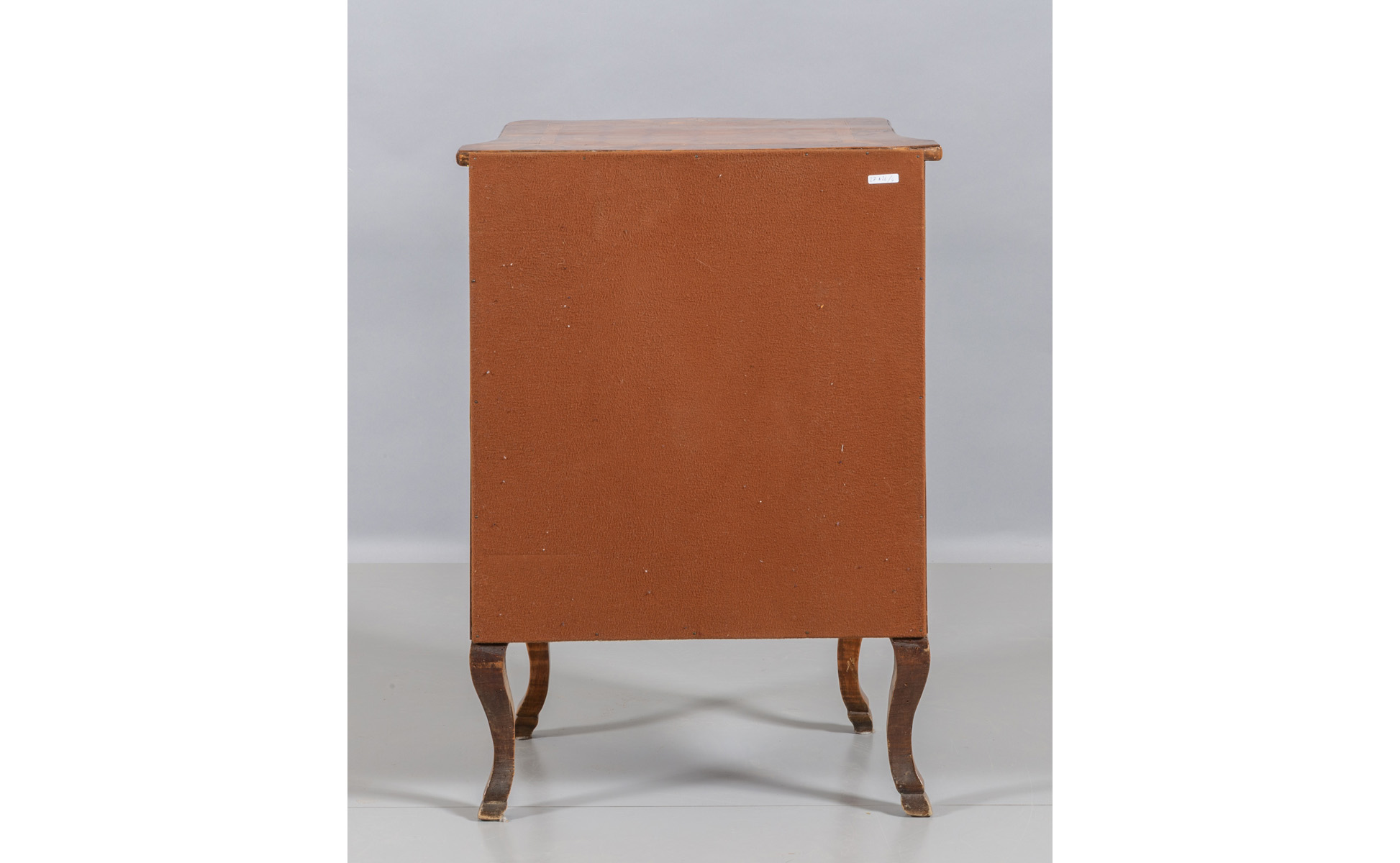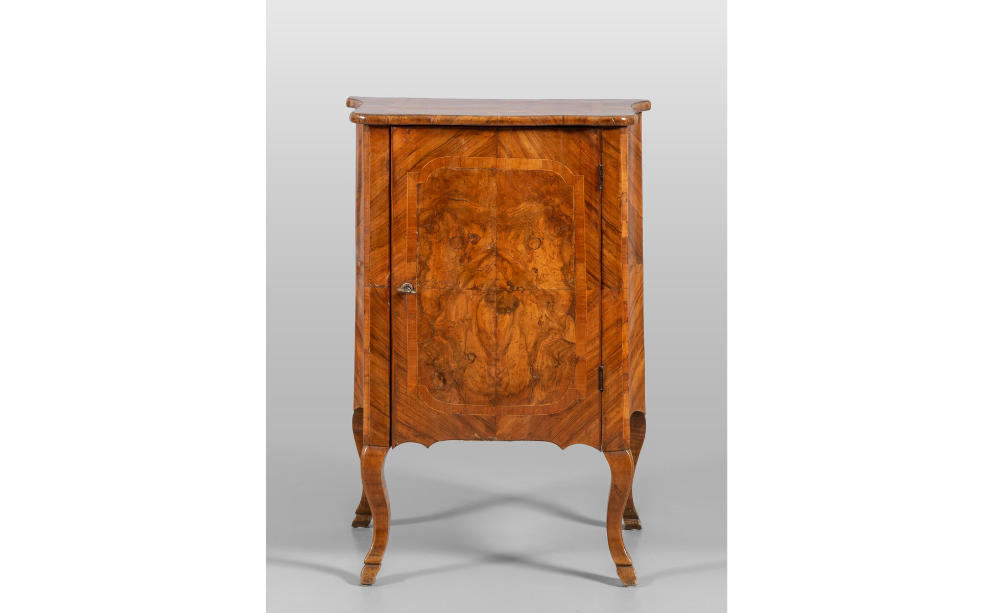 Comodino Luigi XV a gambe arquate lastronato in noce, Piemonte/Lombardia metà sec.XVIII
