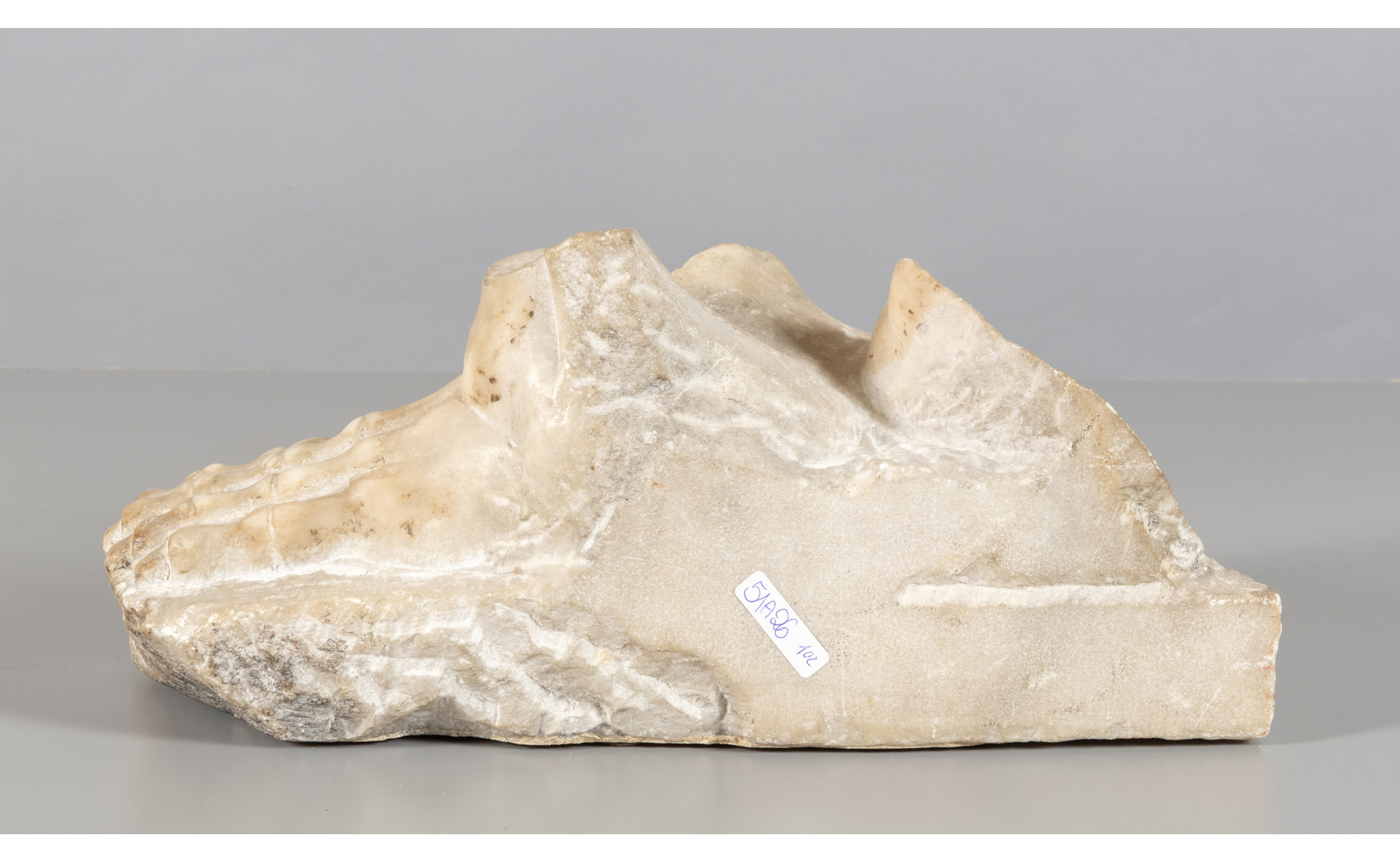 Lot 0080 | Frammento in marmo bianco raffigurante un piede,