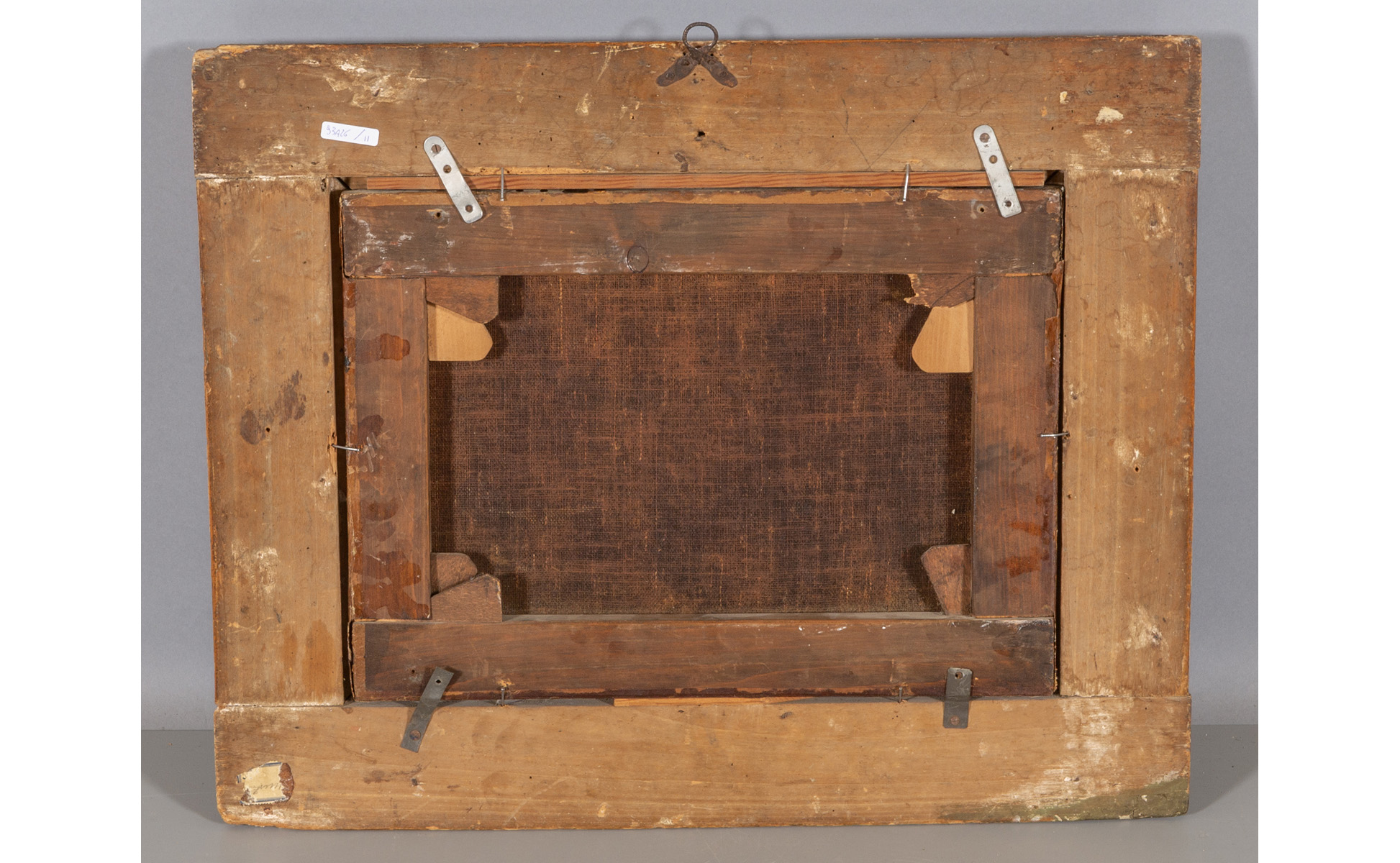 Scuola lombarda sec.XVII (Matteo Ghidone ?) "Carro di mendicanti" olio, bella cornice in legno intagliato e dorato