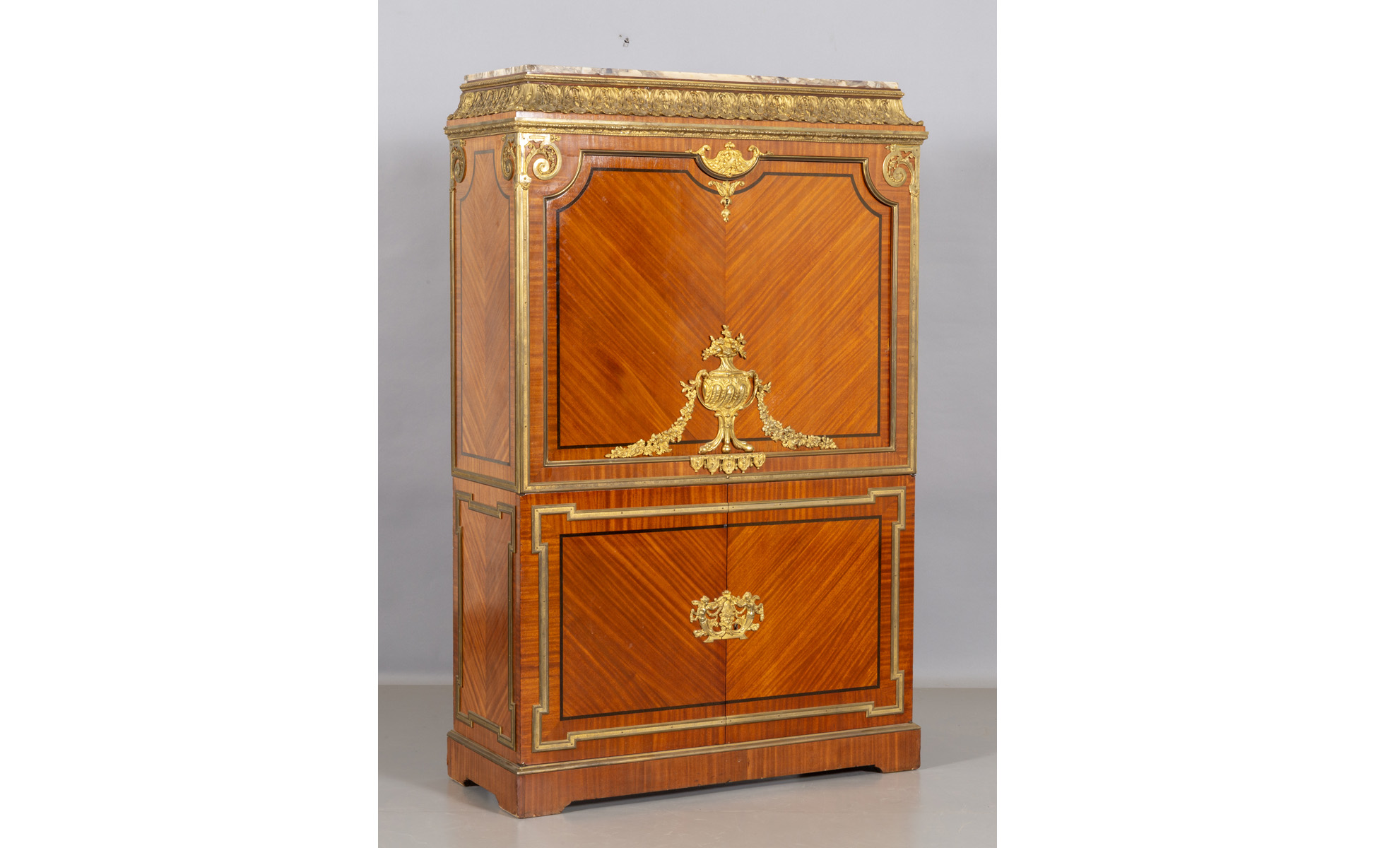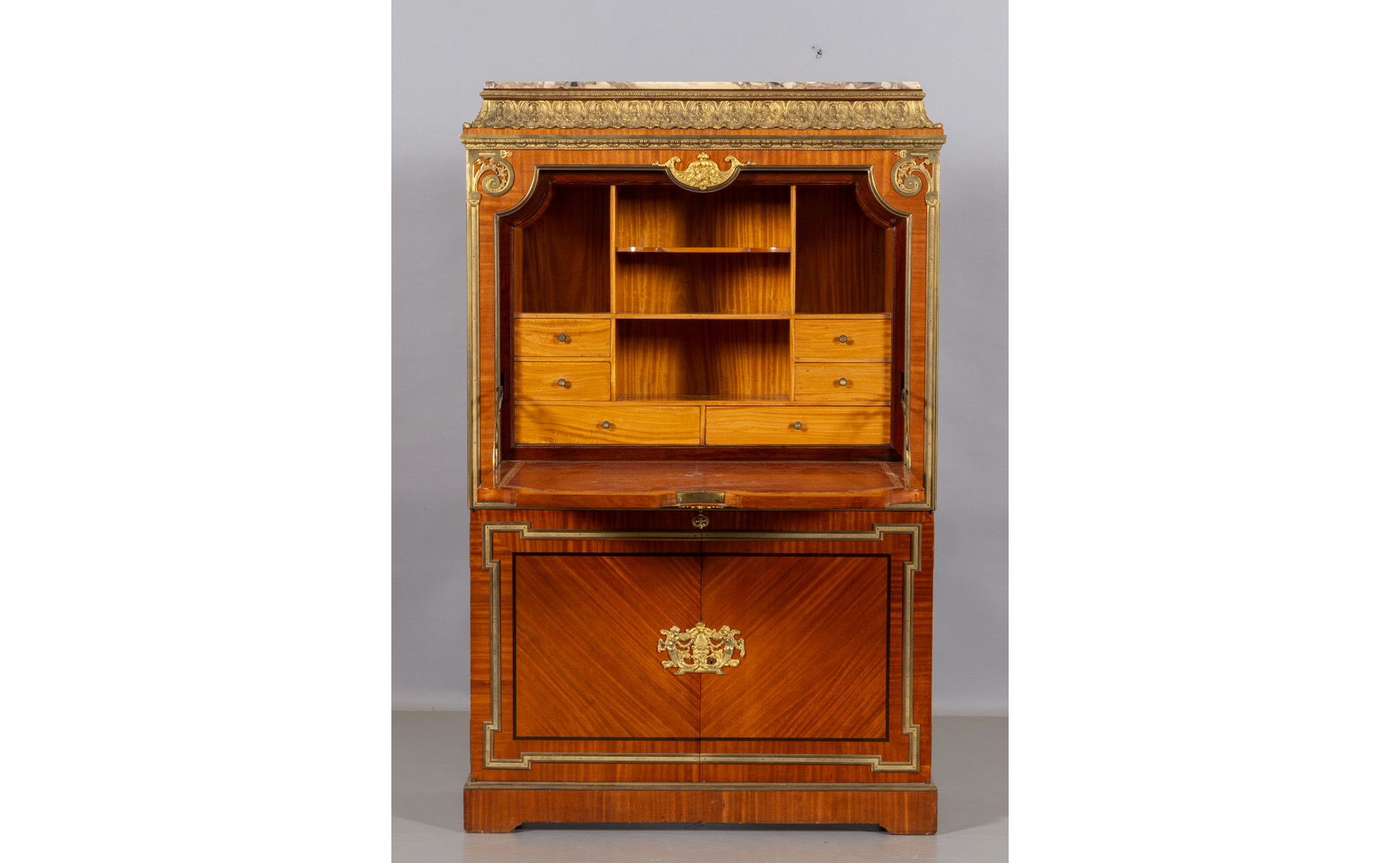 Secretaire Napoleone III in legno di rosa filettato in palissandro con ricca decorazione in bronzo, Francia sec.XIX