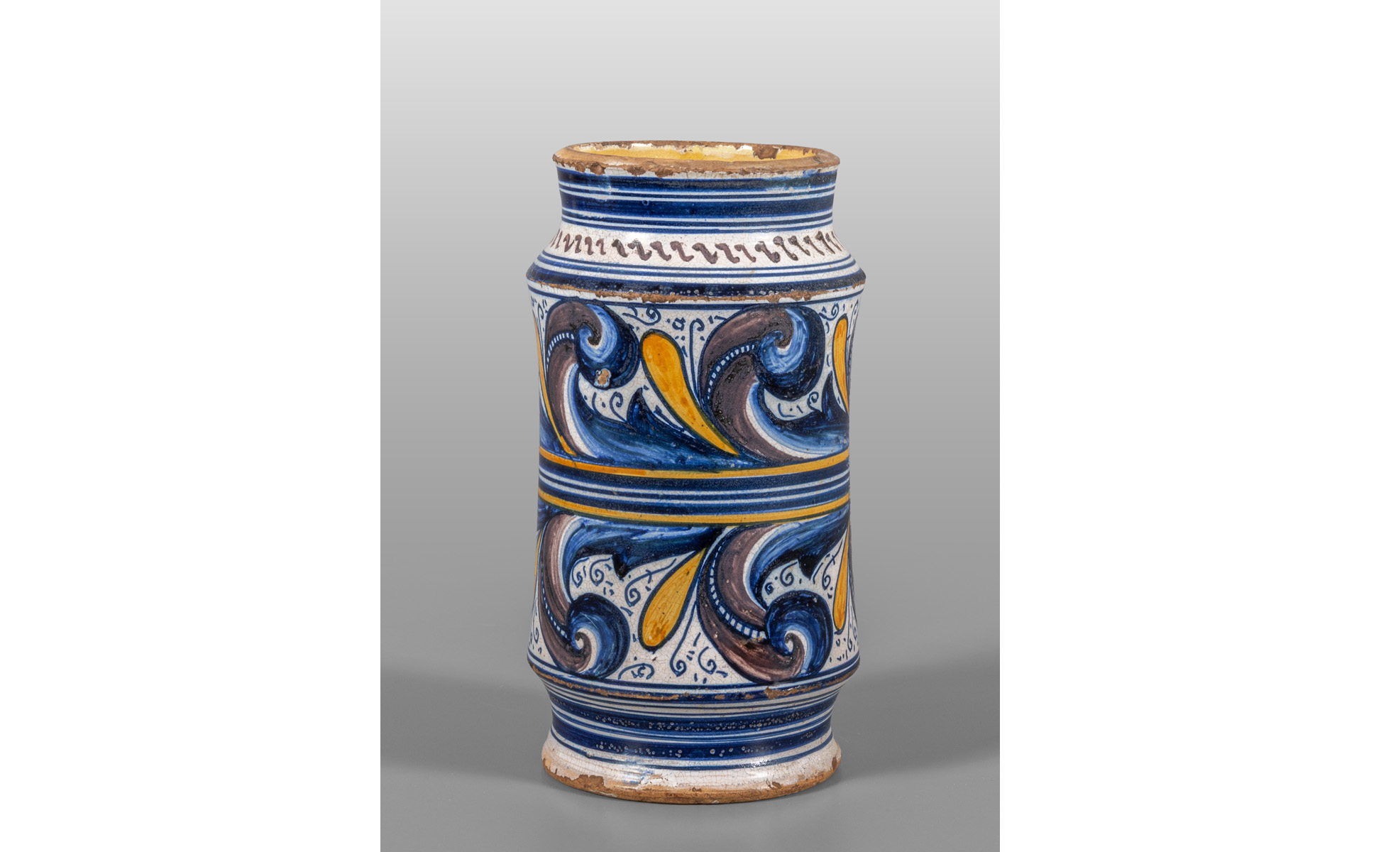 Albarello in maoilica con decoro policromo a foglia, Toscana sec.XVIII