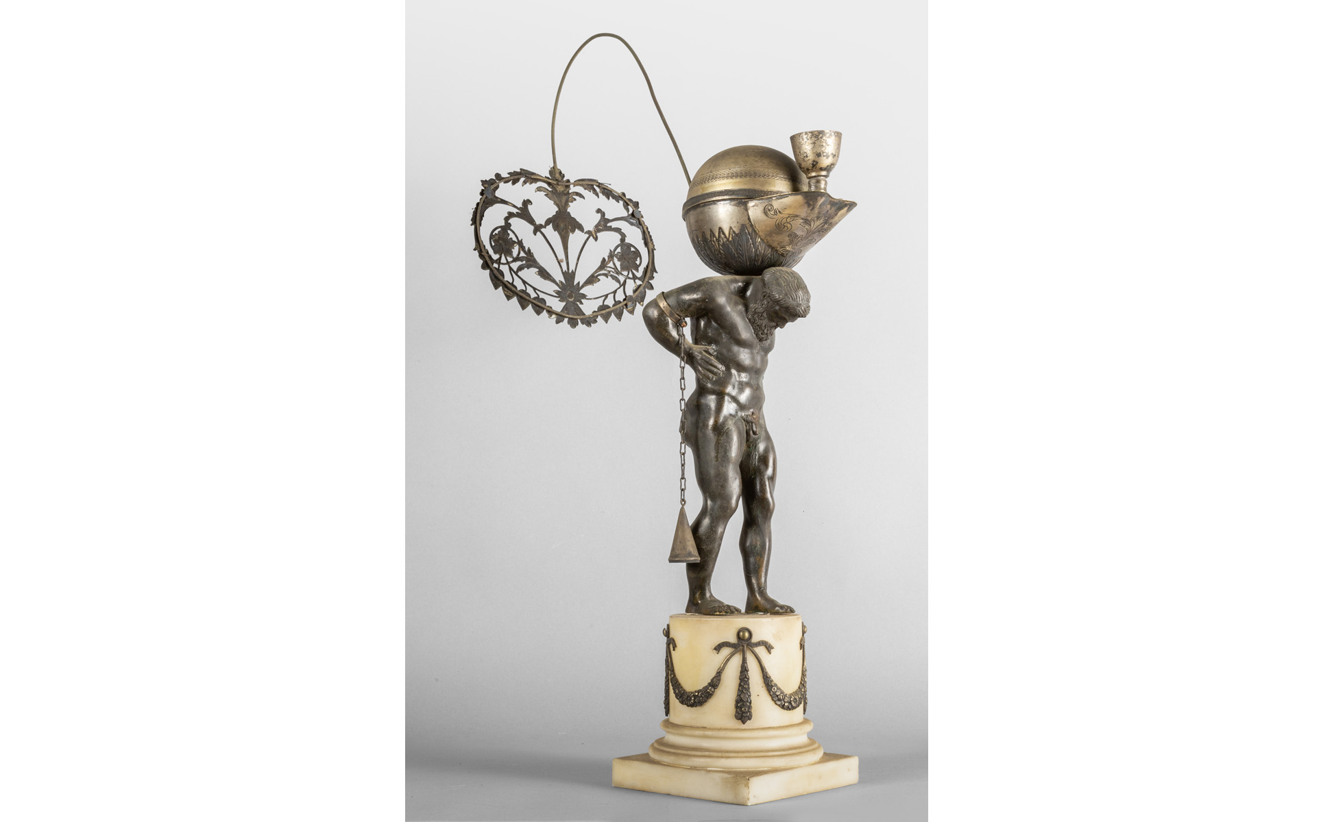 Lampada fiorentina raffigurante Atalnte in argento, bronzo e marmo, II metà sec. XVIII