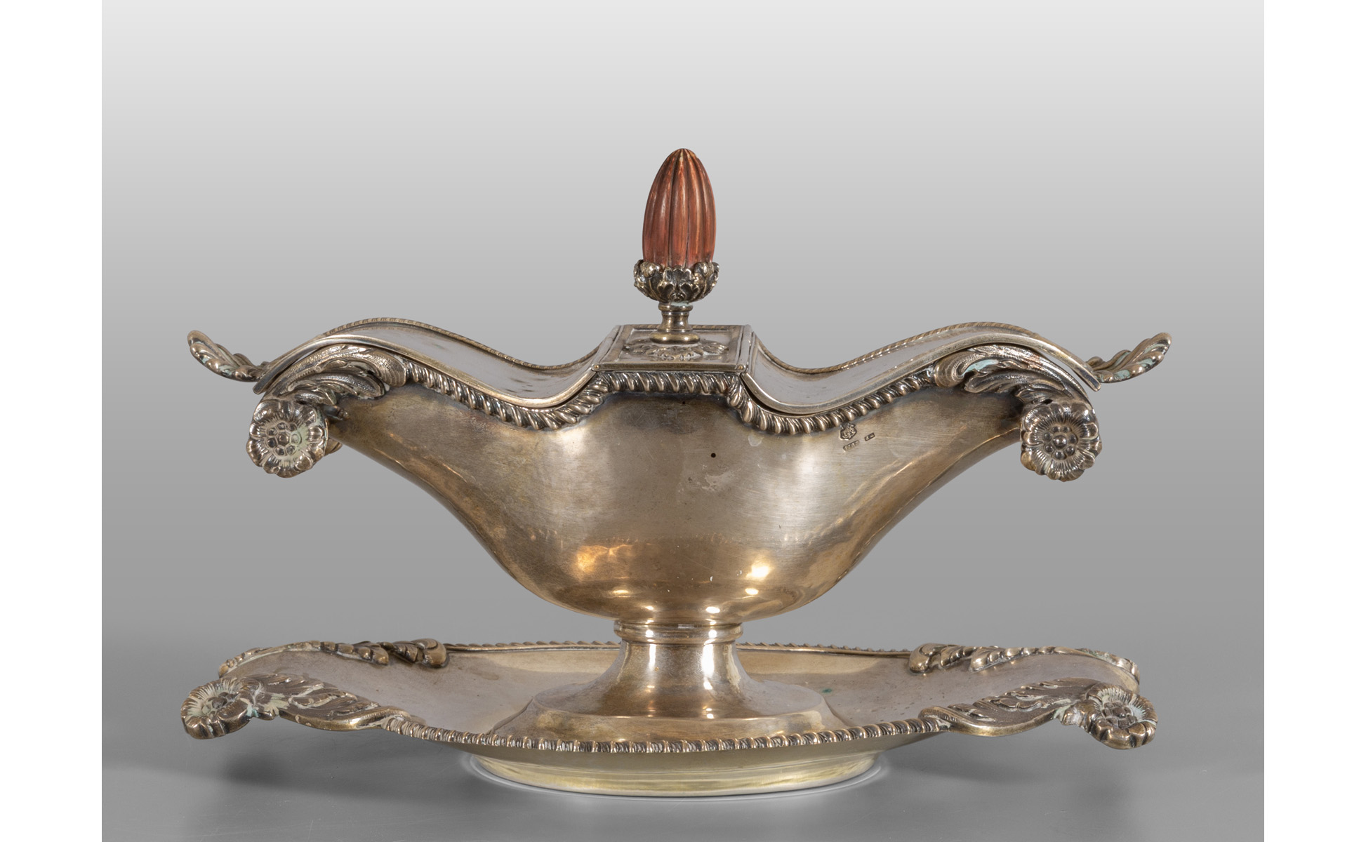 Salsiera in argento con piattino, punzone della