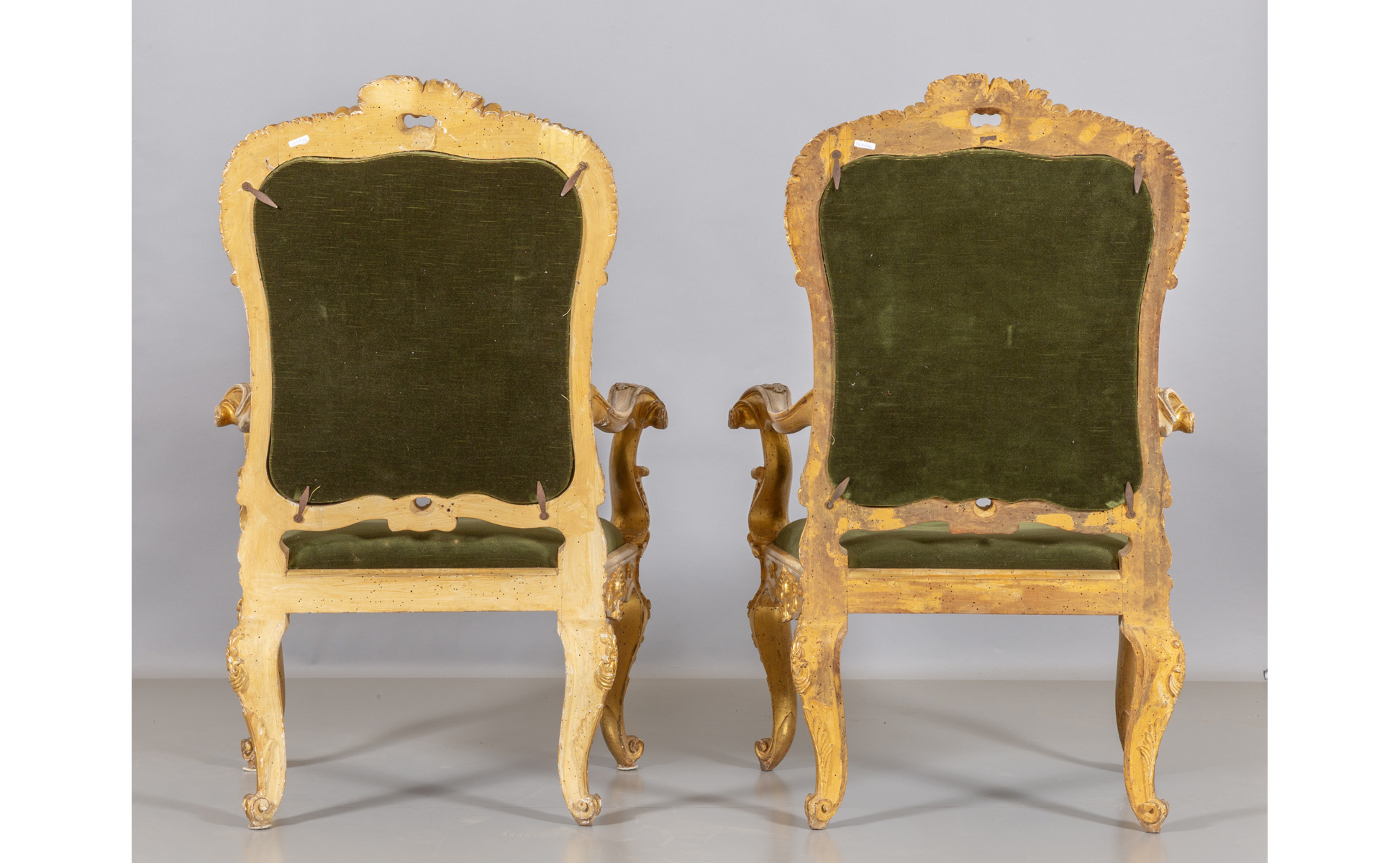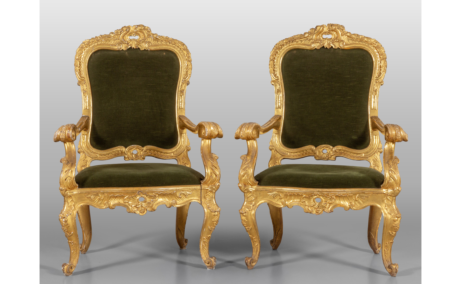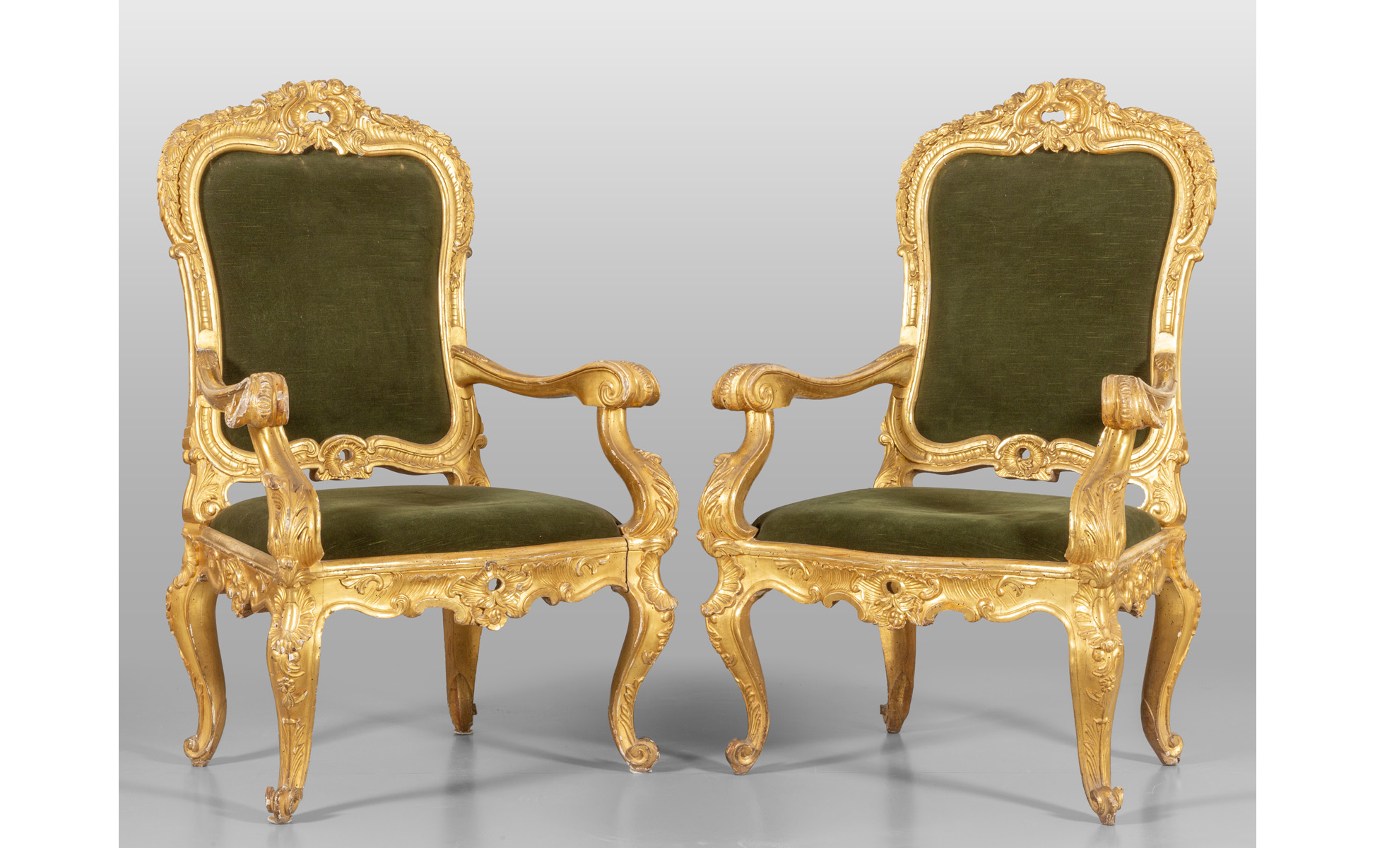 Coppia di poltrone Luigi XV in legno intagliato e dorato, Roma sec.XVIII
