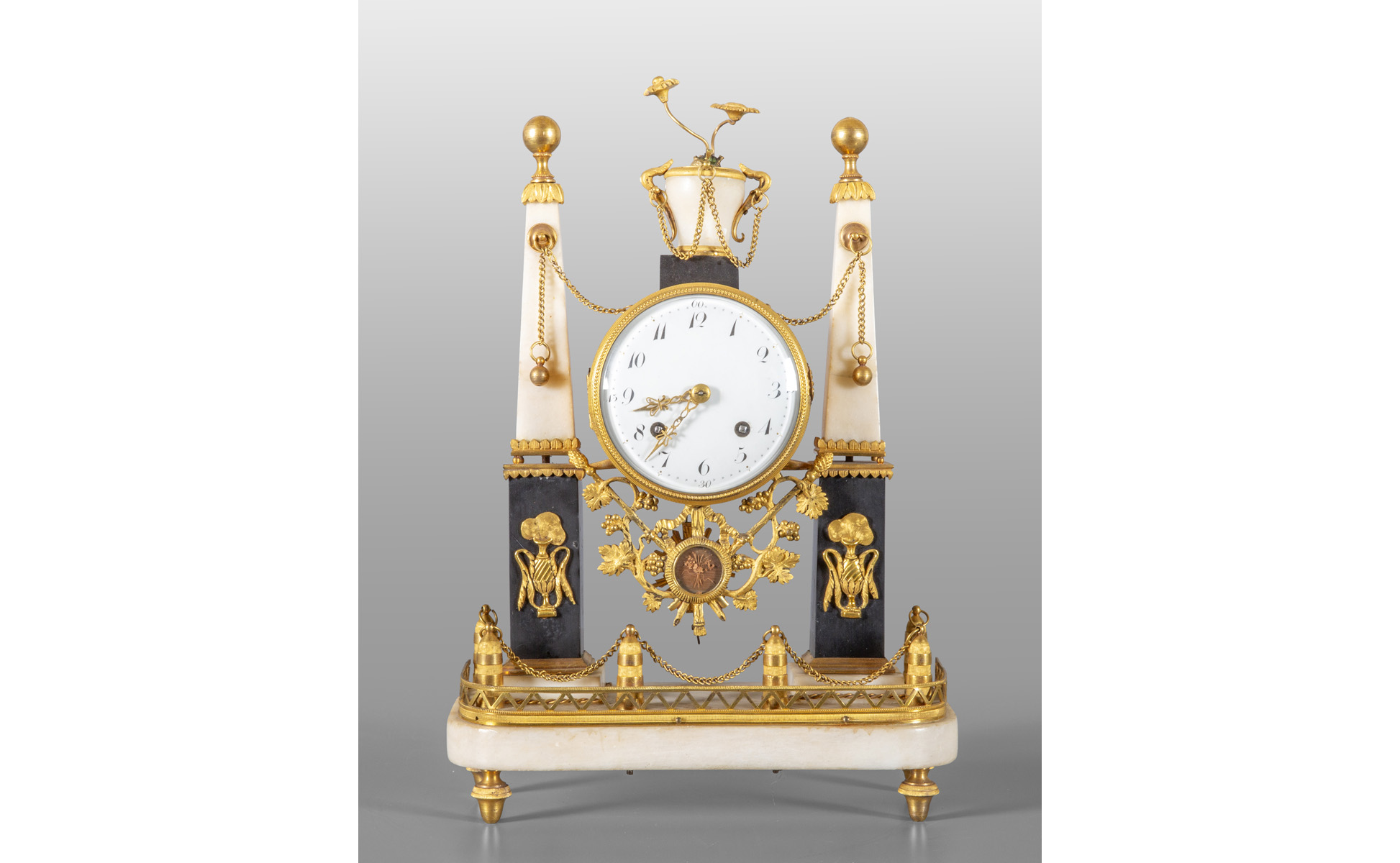Orologio Luigi XVI in bronzo dorato e marmo con al centro microintaglio alla maniera del Bonzanigo, fine sec.XVIII