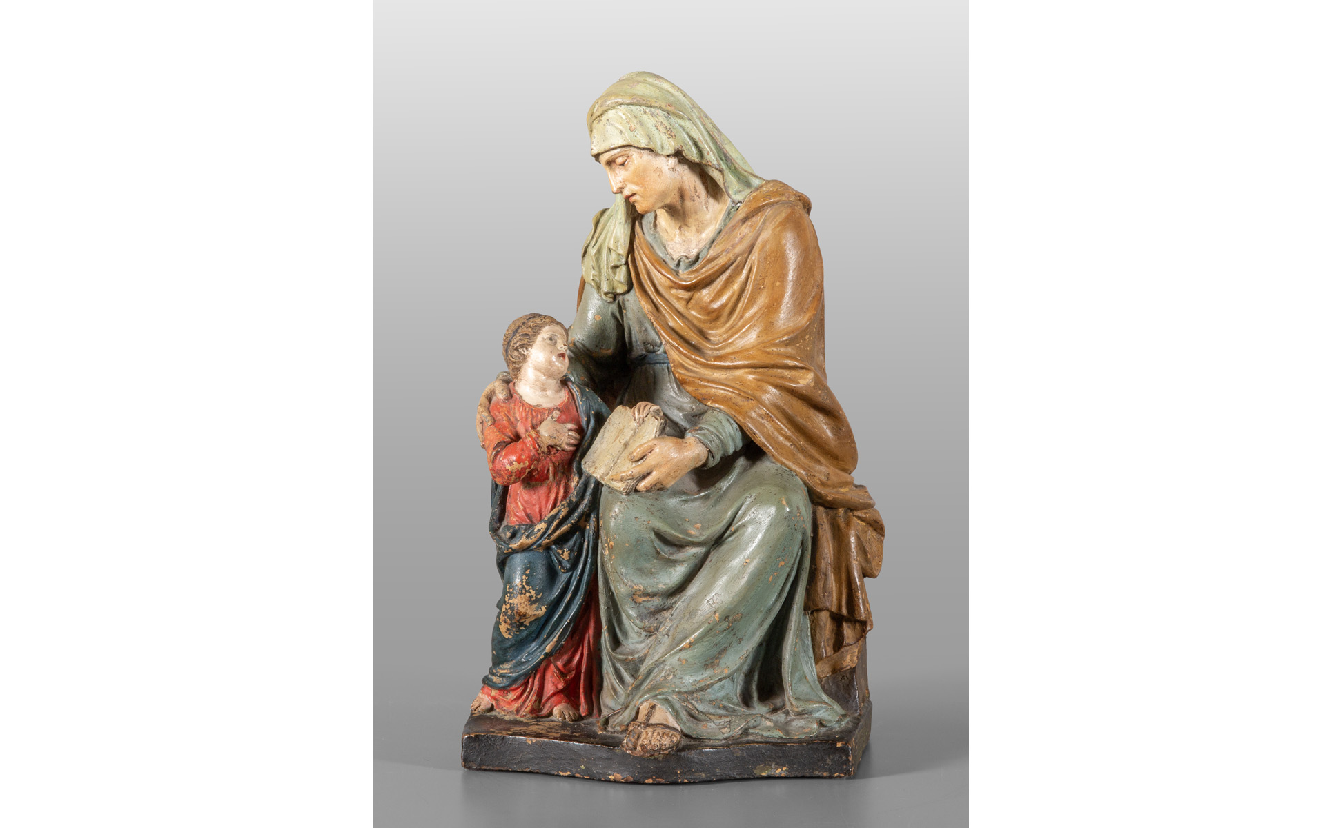 L'educazione della Vergine, scultura in terracotta policroma, Emilia sec.XVII